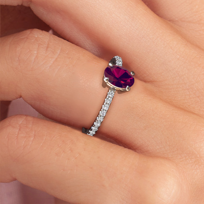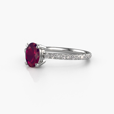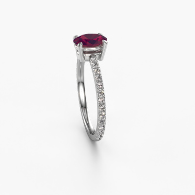 Bovenstaande verlovingsring heeft de naam Lynelle 2. Dit type verlovingsring noemen we een pavé solitaire verlovingsring omdat hij een enkele middensteen heeft waarbij de banden van de verlovingsring ook volgezet zijn. Deze verlovingsring is uitgevoerd in platina en heeft als middensteen een ovale rhodoliet ter grootte van 7x5 mm, en in de zijbanden zijn diamanten gezet. Ieder juweel is gemaakt om aan je vinger te stralen, ieder sieraad wordt met liefde door onze goudsmeden met de hand gemaakt.. Deze klassieke platina pavé solitaire verlovingsring heeft een schitterende ovale rhodoliet als center steen, waarbij in de band nog meer diamanten zijn gezet om de middensteen nog meer te accentueren. Doordat de zetting van de pootjes om de rhodoliet open is, vangt de rhodoliet het licht van alle kanten op en schittert hierdoor optimaal. Hierboven kun je zien hoe onze goudsmid de verlovingsring heel precies tot in de kleinste details heeft bewerkt, zodat de wat hoger gelegen rhodoliet een echte eyecatcher is. Wat een prachtige verlovingsring om te geven bij je aanzoek aan de liefde van jouw leven, aan jouw stralende middelpunt!Onze goudsmeden vervaardigen pas je Lynelle 2 verlovingsring, zodra je deze besteld hebt. We hebben geen voorraden. Het voordeel hiervan is dat we de voorraad niet door hoeven te berekenen in de prijs, en kunnen daardoor sieraden leveren tegen een bijzonder lage prijs.Heb je zelf een speciale ring in gedachten, die je wellicht ergens gezien hebt? Je kunt je ideeën altijd met ons bespreken, wij zetten graag jouw ontwerp om tot een unieke verlovingsring. Het ontwerp kun je volgen, omdat wij met 3D tekeningen werken. Hierdoor krijg je al een realistische indruk van hoe jouw ontwerp er in het echt uit komt te zien. Wij sturen je graag een vrijblijvende offerte, waarbij je ongetwijfeld verwonderd zult zijn over de prijs in combinatie met de uitstekende kwaliteit die we aanbieden.Om het voor jou makkelijker te maken kun je ieder besteld sieraad binnen 30 dagen na aflevering eenvoudig weer retour sturen.