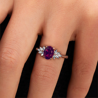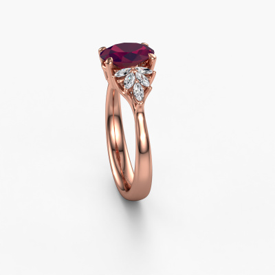De naam van deze verlovingsring is de Fiona OVL. Hij is gemaakt van 14 Carat rosé goud en gezet met 8x6 mm rhodoliet. Hoe zou je de stijl omschrijven van de liefde van jouw leven? Houdt zij van iets dat net een beetje anders is dan anders? Deze fraaie rosé gouden verlovingsring is een mooie ring, die je zelf naar jouw of haar smaak verder kunt aanpassen. In deze unieke verlovingsring is rhodoliet verwerkt. Deze rhodoliet zijn zorgvuldig geselecteerd, want wij vinden dat op jouw verlovingsring alleen de mooiste edelsteen mag schitteren, toch? Dit juweel is speciaal voor jou gemaakt, met aandacht voor detail en design.Door het gebruik van de modernste technieken, gecombineerd met ambachtelijk vakmanschap kunnen wij alle verlovingsringen zelf in ons atelier maken. Ieder sieraad wordt pas gemaakt nadat deze besteld is. Dit heeft als bijkomend voordeel dat we kunnen leveren tegen een prijs die je nergens anders tegenkomt.Iedere dag is ons team van goudsmeden en sieradenontwerpers aan het werk om nieuwe sieraden te creëren. Het kan zijn dat je ergens een unieke verlovingsring gezien hebt, die je als basis wilt nemen bij het ontwerpen van jouw unieke ring. Neem gerust contact met ons op en we zullen je een aanbod doen, waar je vrijwel zeker verwonderd zult zijn over de kwaliteit en de prijs.Om het voor jou makkelijker te maken kun je ieder besteld sieraad binnen 30 dagen na aflevering eenvoudig weer retour sturen.