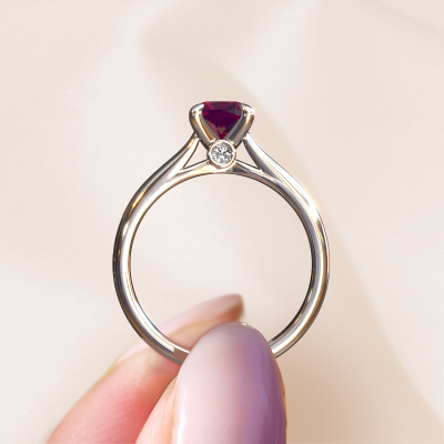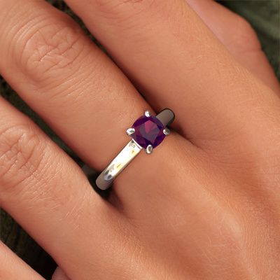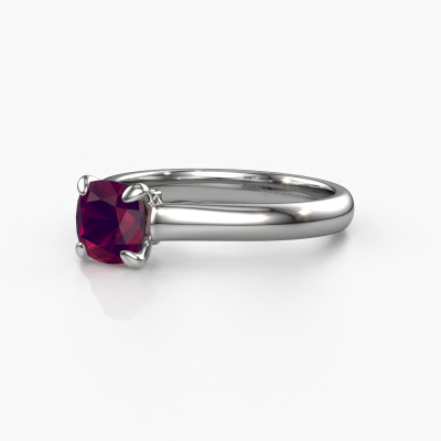 Bovenstaande verlovingsring heeft de naam Valorie cus 1, dit type verlovingsring noemen we een solitaire ring omdat hij een enkele edelsteen bevat. De verlovingsring is uitgevoerd in 14 Carat witgoud en heeft een cushion rhodoliet ter grootte van 6 mm. Het leuke van onze configurator is dat je zelf je juweel kunt samenstellen tot een eigen persoonlijk juweel. Deze solitaire ring is uitgevoerd in de edelmetaal combinatie witgoud met witgoud, maar u kunt dus ook uit andere kleuren kiezen. Ieder juweel is gemaakt om aan jouw vinger te stralen, ieder sieraad wordt met liefde door onze goudsmeden met de hand gemaakt.De solitaire verlovingsring is een bijzondere verlovingsring. Juist doordat de chatonzetting open is, creëert de lichtinval een schitterend effect op de edelsteen. Omdat de gekozen edelsteen hoog op de verlovingsring geplaatst wordt, wordt deze klassieke verlovingsring een prachtige eyecatcher. Met veel zorgvuldigheid vervaardigen wij alle details in deze solitaire verlovingsring met de hand, zodat jij binnenkort je aanzoek kunt bekronen met een unieke ring, speciaal voor de liefde van jouw leven!Wellicht is het je opgevallen dat onze prijzen gemiddeld 30% lager liggen dan bij een andere juwelier. En dat terwijl de kwaliteit in de meeste gevallen nog beter is! Dit komt doordat onze goudsmeden je verlovingsring direct in ons eigen atelier vervaardigen. Hierdoor hoeven we geen dure voorraden te hanteren en kunnen we ieder gewenst detail direct op jouw verlovingsring aanbrengen.Heb je zelf een specifieke verlovingsring ergens gezien, die je graag aan jouw geliefde zou willen geven? Bespreek gerust jouw ideeën met onze sieradenontwerpers, want wij zetten graag jouw ontwerp om tot een klassieke verlovingsring. Je kunt tijdens het ontwerpproces steeds meekijken, omdat wij met 3D tekeningen werken. Je krijgt hierdoor al een realistische indruk van hoe jouw ontwerp er in werkelijkheid uit komt te zien. Daarbij kun je een dummy vooraf bestellen. Een dummy is een kunststof ring, die precies dezelfde vormen heeft als jouw uiteindelijke ontwerp. Je kunt deze passen en zien of de breedte en dikte bijvoorbeeld naar wens zijn. Wij sturen je graag een vrijblijvende offerte, waarbij je ongetwijfeld versteld zult staan over de prijs en de kwaliteit van de ring en edelstenen.Om het voor jou makkelijker te maken kun je ieder besteld sieraad binnen 30 dagen na aflevering eenvoudig weer retour sturen.