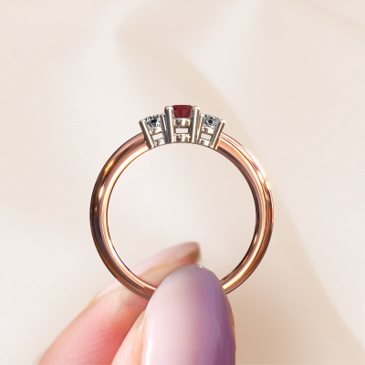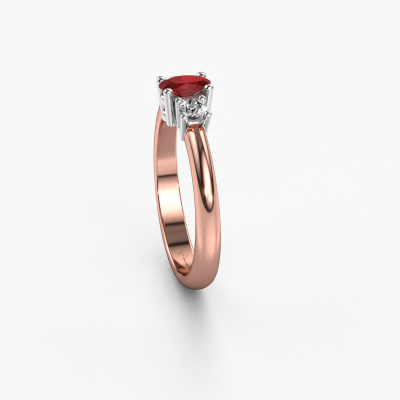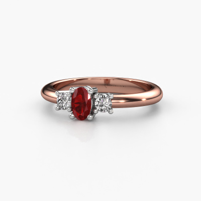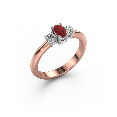 De naam van deze aanzoeksring is de Karie. Hij is gemaakt van 14 Carat rosé goud en gezet met 5x3 mm robijn. Hoe zou je de stijl omschrijven van de liefde van jouw leven? Houdt zij van iets dat net een beetje anders is dan anders? Deze opengewerkte rosé gouden aanzoeksring is een mooie ring, die je zelf naar jouw of haar smaak verder kunt aanpassen. In deze traditionele aanzoeksring is robijn verwerkt. Deze robijn zijn zorgvuldig geselecteerd, want wij vinden dat op jouw aanzoeksring alleen de mooiste edelsteen mag schitteren, toch? Dit juweel wordt speciaal voor jou gemaakt door onze meester goudsmeden in ons eigen atelier.Wist je dat we een beste prijs garantie geven voor jouw aanzoeksring? Dit is mogelijk omdat al onze sieraden met de hand gemaakt worden in ons eigen atelier. We hebben geen dure voorraden, en we maken pas je aanzoeksring op het moment dat je besteld hebt. Doordat we de hele productie zelf in de hand hebben, kunnen wij je goed informeren over alle eigenschappen van deze ring. Juist omdat het kopen van een aanzoeksring online spannend is, begrijpen wij dat het fijn is om alle kenmerken te weten van jouw ring.Heb je zelf een speciale ring in gedachten, die je wellicht ergens gezien hebt? Je kunt je ideeën altijd met ons bespreken, wij zetten graag jouw ontwerp om tot een unieke aanzoeksring. Het ontwerp kun je volgen, omdat wij met 3D tekeningen werken. Hierdoor krijg je al een realistische indruk van hoe jouw ontwerp er in het echt uit komt te zien. Wij sturen je graag een vrijblijvende offerte, waarbij je ongetwijfeld verwonderd zult zijn over de prijs in combinatie met de uitstekende kwaliteit die we aanbieden.Om het voor jou makkelijker te maken kun je ieder besteld sieraad binnen 30 dagen na aflevering eenvoudig weer retour sturen.