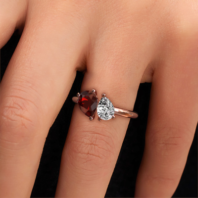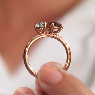 Deze verlovingsring heeft de naam Toi et Moi PER-PER. Deze ring, uitgevoerd in 14 Carat rosé goud is gezet met granaat. Ben je op zoek naar een unieke rosé gouden verlovingsring met een modieuze uitstraling? Dan is dit een mooie ring, die je zelf naar jouw of haar smaak verder kunt aanpassen. In deze modieuze verlovingsring is prachtige granaat verwerkt. Deze is zorgvuldig geselecteerd, want op jouw fashionable verlovingsring mag alleen de mooiste edelsteen schitteren. Onze goudsmid vervaardigt jouw verlovingsring in ons eigen atelier, en plaatst de granaat met uiterste precisie in de ring. Vervolgens wordt deze bijgewerkt en gepolijst totdat het resultaat zichtbaar is: de perfecte verlovingsring voor de liefde van jouw leven!Wist je dat we een beste prijs garantie geven voor jouw verlovingsring? Dit is mogelijk omdat al onze sieraden met de hand gemaakt worden in ons eigen atelier. We hebben geen dure voorraden, en we maken pas je verlovingsring op het moment dat je besteld hebt. Doordat we de hele productie zelf in de hand hebben, kunnen wij je goed informeren over alle eigenschappen van deze ring. Juist omdat het kopen van een verlovingsring online spannend is, begrijpen wij dat het fijn is om alle kenmerken te weten van jouw ring.Iedere dag is ons team van goudsmeden en sieradenontwerpers aan het werk om nieuwe sieraden te creëren. Het kan zijn dat je ergens een modieuze verlovingsring gezien hebt, die je als basis wilt nemen bij het ontwerpen van jouw unieke ring. Neem gerust contact met ons op en we zullen je een aanbod doen, waar je vrijwel zeker verwonderd zult zijn over de kwaliteit en de prijs.Om het voor jou makkelijker te maken kun je ieder besteld sieraad binnen 30 dagen na aflevering eenvoudig weer retour sturen.