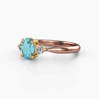 Deze verlovingsring heeft de naam Lieselot OVL. Deze ring, uitgevoerd in 14 Carat rosé goud is gezet met blauw topaas. Ben je op zoek naar een unieke rosé gouden verlovingsring met een eigentijdse uitstraling? Dan is dit een mooie ring, die je zelf naar jouw of haar smaak verder kunt aanpassen. In deze eigentijdse verlovingsring is prachtige blauw topaas verwerkt. Deze is zorgvuldig geselecteerd, want op jouw gracieuze verlovingsring mag alleen de mooiste edelsteen schitteren. Onze goudsmid vervaardigt jouw verlovingsring in ons eigen atelier, en plaatst de blauw topaas met uiterste precisie in de ring. Vervolgens wordt deze bijgewerkt en gepolijst totdat het resultaat zichtbaar is: de perfecte verlovingsring voor de liefde van jouw leven!Door het gebruik van de modernste technieken, gecombineerd met ambachtelijk vakmanschap kunnen wij alle verlovingsringen zelf in ons atelier maken. Ieder sieraad wordt pas gemaakt nadat deze besteld is. Dit heeft als bijkomend voordeel dat we kunnen leveren tegen een prijs die je nergens anders tegenkomt.Ons team is iedere dag weer bezig om nieuwe ontwerpen toe te voegen, in samenwerking met onze designers en goudsmeden wordt gekeken hoe we tot het mooiste ontwerp kunnen komen. Wij doen ons best om tot een zo gevarieerd mogelijk aanbod te komen. Wellicht heb je zelf al een mooi idee van een sieraad dat je ooit wel eens gezien hebt. Neem dan eens vrijblijvend contact met ons op. Wij maken een offerte voor je op waarbij wij vrij zeker zijn dat we wat betreft kwaliteit en prijs jou versteld zullen laten staan.Om het voor jou makkelijker te maken kun je ieder besteld sieraad binnen 30 dagen na aflevering eenvoudig weer retour sturen.