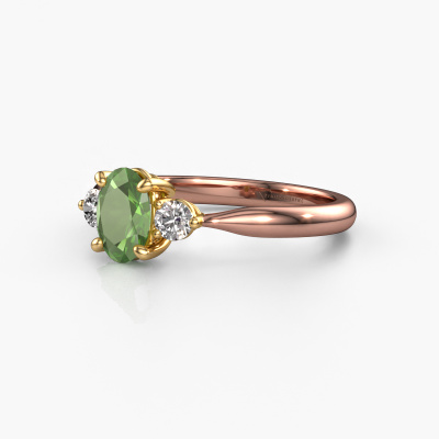 Deze verlovingsring heeft de naam Lieselot OVL. Deze ring, uitgevoerd in 14 Carat rosé goud is gezet met toermalijn groen. Ben je op zoek naar een unieke rosé gouden verlovingsring met een eigentijdse uitstraling? Dan is dit een mooie ring, die je zelf naar jouw of haar smaak verder kunt aanpassen. In deze eigentijdse verlovingsring is prachtige toermalijn groen verwerkt. Deze is zorgvuldig geselecteerd, want op jouw gracieuze verlovingsring mag alleen de mooiste edelsteen schitteren. Onze goudsmid vervaardigt jouw verlovingsring in ons eigen atelier, en plaatst de toermalijn groen met uiterste precisie in de ring. Vervolgens wordt deze bijgewerkt en gepolijst totdat het resultaat zichtbaar is: de perfecte verlovingsring voor de liefde van jouw leven!Door het gebruik van de modernste technieken, gecombineerd met ambachtelijk vakmanschap kunnen wij alle verlovingsringen zelf in ons atelier maken. Ieder sieraad wordt pas gemaakt nadat deze besteld is. Dit heeft als bijkomend voordeel dat we kunnen leveren tegen een prijs die je nergens anders tegenkomt.Ons team is iedere dag weer bezig om nieuwe ontwerpen toe te voegen, in samenwerking met onze designers en goudsmeden wordt gekeken hoe we tot het mooiste ontwerp kunnen komen. Wij doen ons best om tot een zo gevarieerd mogelijk aanbod te komen. Wellicht heb je zelf al een mooi idee van een sieraad dat je ooit wel eens gezien hebt. Neem dan eens vrijblijvend contact met ons op. Wij maken een offerte voor je op waarbij wij vrij zeker zijn dat we wat betreft kwaliteit en prijs jou versteld zullen laten staan.Om het voor jou makkelijker te maken kun je ieder besteld sieraad binnen 30 dagen na aflevering eenvoudig weer retour sturen.