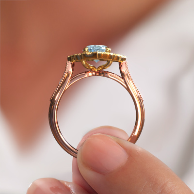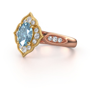 Deze verlovingsring heeft de naam Rosan. Deze verlovingsring uitgevoerd in 14 Carat rosé goud is gezet met blauwe lab grown diamant. Een bijzondere rosé gouden vintage ring, deze unieke verlovingsring die jouw liefde van je leven zeker laat stralen! En dat is precies waar wij voor gaan. In deze vintage verlovingsring zijn prachtige blauwe lab grown diamanten verwerkt. Je kunt natuurlijk iedere edelsteen die wij aanbieden hierin laten verwerken. De edelsteen is zorgvuldig geselecteerd, want wij vinden dat op jouw verlovingsring alleen de mooiste edelsteen mag schitteren, toch? Onze goudsmid vervaardigt jouw verlovingsring in ons eigen atelier, en plaatst de blauwe lab grown diamant met uiterste precisie in de ring. Vervolgens wordt deze bijgewerkt en gepolijst totdat het resultaat zichtbaar is: de perfecte verlovingsring voor de liefde van jouw leven! Dit juweel wordt speciaal voor jou gemaakt door onze meester goudsmeden in ons eigen atelier.Wist je dat we een beste prijs garantie geven voor jouw verlovingsring? Dit is mogelijk omdat al onze sieraden met de hand gemaakt worden in ons eigen atelier. We hebben geen dure voorraden, en we maken pas je verlovingsring op het moment dat je besteld hebt. Doordat we de hele productie zelf in de hand hebben, kunnen wij je goed informeren over alle eigenschappen van deze ring. Juist omdat het kopen van een verlovingsring online spannend is, begrijpen wij dat het fijn is om alle kenmerken te weten van jouw ring.Ons team is iedere dag weer bezig om nieuwe ontwerpen toe te voegen, in samenwerking met onze designers en goudsmeden wordt gekeken hoe we tot het mooiste ontwerp kunnen komen. Wij doen ons best om tot een zo gevarieerd mogelijk aanbod te komen. Wellicht heb je zelf al een mooi idee van een sieraad dat je ooit wel eens gezien hebt. Neem dan eens vrijblijvend contact met ons op. Wij maken een offerte voor je op waarbij wij vrij zeker zijn dat we wat betreft kwaliteit en prijs jou versteld zullen laten staan.Om het voor jou makkelijker te maken kun je ieder besteld sieraad binnen 30 dagen na aflevering eenvoudig weer retour sturen.