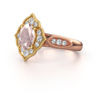 Deze verlovingsring heeft de naam Rosan. Deze verlovingsring uitgevoerd in 14 Carat rosé goud is gezet met morganiet champagne. Een bijzondere rosé gouden vintage ring, deze unieke verlovingsring die jouw liefde van je leven zeker laat stralen! En dat is precies waar wij voor gaan. In deze vintage verlovingsring zijn prachtige morganiet champagne verwerkt. Je kunt natuurlijk iedere edelsteen die wij aanbieden hierin laten verwerken. De edelsteen is zorgvuldig geselecteerd, want wij vinden dat op jouw verlovingsring alleen de mooiste edelsteen mag schitteren, toch? Onze goudsmid vervaardigt jouw verlovingsring in ons eigen atelier, en plaatst de morganiet champagne met uiterste precisie in de ring. Vervolgens wordt deze bijgewerkt en gepolijst totdat het resultaat zichtbaar is: de perfecte verlovingsring voor de liefde van jouw leven! Dit juweel wordt speciaal voor jou gemaakt door onze meester goudsmeden in ons eigen atelier.Wist je dat we een beste prijs garantie geven voor jouw verlovingsring? Dit is mogelijk omdat al onze sieraden met de hand gemaakt worden in ons eigen atelier. We hebben geen dure voorraden, en we maken pas je verlovingsring op het moment dat je besteld hebt. Doordat we de hele productie zelf in de hand hebben, kunnen wij je goed informeren over alle eigenschappen van deze ring. Juist omdat het kopen van een verlovingsring online spannend is, begrijpen wij dat het fijn is om alle kenmerken te weten van jouw ring.Ons team is iedere dag weer bezig om nieuwe ontwerpen toe te voegen, in samenwerking met onze designers en goudsmeden wordt gekeken hoe we tot het mooiste ontwerp kunnen komen. Wij doen ons best om tot een zo gevarieerd mogelijk aanbod te komen. Wellicht heb je zelf al een mooi idee van een sieraad dat je ooit wel eens gezien hebt. Neem dan eens vrijblijvend contact met ons op. Wij maken een offerte voor je op waarbij wij vrij zeker zijn dat we wat betreft kwaliteit en prijs jou versteld zullen laten staan.Om het voor jou makkelijker te maken kun je ieder besteld sieraad binnen 30 dagen na aflevering eenvoudig weer retour sturen.
