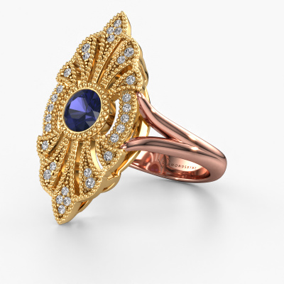 Deze verlovingsring heeft de naam Hanna. Deze verlovingsring uitgevoerd in 14 Carat rosé goud is gezet met 5 mm saffier. Deze filigraan rosé gouden verlovingsring is een meesterwerkje op zich. Een prachtig ontwerp van verfijnde draadjes die een uniek geheel vormen. Tegelijkertijd een mooie uitdaging voor onze gepassioneerd goudsmeden! Met veel toewijding, geduld en uiterste precisie vervaardigen zij deze verlovingsring speciaal voor jouw geliefde. Alles wordt met de hand gemaakt, waardoor ieder draadje tot in het kleinste detail perfect bewerkt kan worden. Een lang proces van smeden, bewerken en polijsten, totdat de meestersmid de verlovingsring in het licht houdt en tevreden is... een perfecte verlovingsring waar hij echt trots op is. Daarom is deze vintage filigraan verlovingsring ook een bijzondere verlovingsring om te schenken aan de liefde van je leven! Die ene persoon ga jij binnenkort vragen, en alleen voor deze persoon is deze unieke verlovingsring voor vervaardigd! Prachtig toch? Dit juweel is gemaakt om aan je vinger te stralen, ieder sieraad wordt met liefde door onze goudsmeden met de hand gemaakt.Wist je dat we een beste prijs garantie geven voor jouw verlovingsring? Dit is mogelijk omdat al onze sieraden met de hand gemaakt worden in ons eigen atelier. We hebben geen dure voorraden, en we maken pas je verlovingsring op het moment dat je besteld hebt. Doordat we de hele productie zelf in de hand hebben, kunnen wij je goed informeren over alle eigenschappen van deze ring. Juist omdat het kopen van een verlovingsring online spannend is, begrijpen wij dat het fijn is om alle kenmerken te weten van jouw ring.Ons team is iedere dag weer bezig om nieuwe ontwerpen toe te voegen, in samenwerking met onze designers en goudsmeden wordt gekeken hoe we tot het mooiste ontwerp kunnen komen. Wij doen ons best om tot een zo gevarieerd mogelijk aanbod te komen. Wellicht heb je zelf al een mooi idee van een sieraad dat je ooit wel eens gezien hebt. Neem dan eens vrijblijvend contact met ons op. Wij maken een offerte voor je op waarbij wij vrij zeker zijn dat we wat betreft kwaliteit en prijs jou versteld zullen laten staan.Om het voor jou makkelijker te maken kun je ieder besteld sieraad binnen 30 dagen na aflevering eenvoudig weer retour sturen.