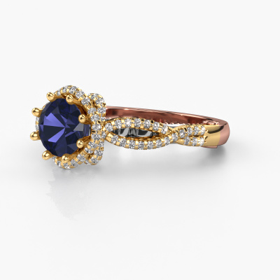 Deze verlovingsring heeft de naam Lysanne. Deze verlovingsring uitgevoerd in 14 Carat rosé goud is gezet met 6.5 mm saffier. Deze filigraan rosé gouden verlovingsring is een meesterwerkje op zich. Een prachtig ontwerp van verfijnde draadjes die een uniek geheel vormen. Tegelijkertijd een mooie uitdaging voor onze gepassioneerd goudsmeden! Met veel toewijding, geduld en uiterste precisie vervaardigen zij deze verlovingsring speciaal voor jouw geliefde. Alles wordt met de hand gemaakt, waardoor ieder draadje tot in het kleinste detail perfect bewerkt kan worden. Een lang proces van smeden, bewerken en polijsten, totdat de meestersmid de verlovingsring in het licht houdt en tevreden is... een perfecte verlovingsring waar hij echt trots op is. Daarom is deze vintage filigraan verlovingsring ook een bijzondere verlovingsring om te schenken aan de liefde van je leven! Die ene persoon ga jij binnenkort vragen, en alleen voor deze persoon is deze unieke verlovingsring voor vervaardigd! Prachtig toch? Dit juweel is gemaakt door een team van gedreven goudsmeden en designers. Hierdoor zal dit unieke pronkstuk een echte eyecatcher zijn.Onze goudsmeden vervaardigen pas je Lysanne verlovingsring, zodra je deze besteld hebt. We hebben geen voorraden. Het voordeel hiervan is dat we de voorraad niet door hoeven te berekenen in de prijs, en kunnen daardoor sieraden leveren tegen een bijzonder lage prijs.Heb je zelf een specifieke verlovingsring ergens gezien, die je graag aan jouw geliefde zou willen geven? Bespreek gerust jouw ideeën met onze sieradenontwerpers, want wij zetten graag jouw ontwerp om tot een vintage verlovingsring. Je kunt tijdens het ontwerpproces steeds meekijken, omdat wij met 3D tekeningen werken. Je krijgt hierdoor al een realistische indruk van hoe jouw ontwerp er in werkelijkheid uit komt te zien. Daarbij kun je een dummy vooraf bestellen. Een dummy is een kunststof ring, die precies dezelfde vormen heeft als jouw uiteindelijke ontwerp. Je kunt deze passen en zien of de breedte en dikte bijvoorbeeld naar wens zijn. Wij sturen je graag een vrijblijvende offerte, waarbij je ongetwijfeld versteld zult staan over de prijs en de kwaliteit van de ring en edelstenen.Om het voor jou makkelijker te maken kun je ieder besteld sieraad binnen 30 dagen na aflevering eenvoudig weer retour sturen.