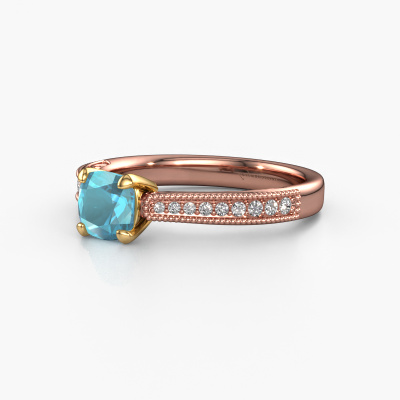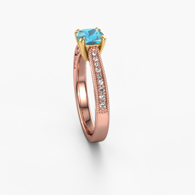 Deze aanzoeksring heeft de naam Shonta CUS. Deze aanzoeksring uitgevoerd in 14 Carat rosé goud is gezet met 5.5 mm blauw topaas. Deze filigraan rosé gouden aanzoeksring is een meesterwerkje op zich. Een prachtig ontwerp van verfijnde draadjes die een uniek geheel vormen. Tegelijkertijd een mooie uitdaging voor onze gepassioneerd goudsmeden! Met veel toewijding, geduld en uiterste precisie vervaardigen zij deze aanzoeksring speciaal voor jouw geliefde. Alles wordt met de hand gemaakt, waardoor ieder draadje tot in het kleinste detail perfect bewerkt kan worden. Een lang proces van smeden, bewerken en polijsten, totdat de meestersmid de aanzoeksring in het licht houdt en tevreden is... een perfecte aanzoeksring waar hij echt trots op is. Daarom is deze vintage filigraan aanzoeksring ook een bijzondere aanzoeksring om te schenken aan de liefde van je leven! Die ene persoon ga jij binnenkort vragen, en alleen voor deze persoon is deze unieke aanzoeksring voor vervaardigd! Prachtig toch? Dit juweel is gemaakt om aan je vinger te stralen, ieder sieraad wordt met liefde door onze goudsmeden met de hand gemaakt.Onze goudsmeden vervaardigen pas je Shonta CUS aanzoeksring, zodra je deze besteld hebt. We hebben geen voorraden. Het voordeel hiervan is dat we de voorraad niet door hoeven te berekenen in de prijs, en kunnen daardoor sieraden leveren tegen een bijzonder lage prijs.Iedere dag is ons team van goudsmeden en sieradenontwerpers aan het werk om nieuwe sieraden te creëren. Het kan zijn dat je ergens een vintage aanzoeksring gezien hebt, die je als basis wilt nemen bij het ontwerpen van jouw unieke ring. Neem gerust contact met ons op en we zullen je een aanbod doen, waar je vrijwel zeker verwonderd zult zijn over de kwaliteit en de prijs.Om het voor jou makkelijker te maken kun je ieder besteld sieraad binnen 30 dagen na aflevering eenvoudig weer retour sturen.