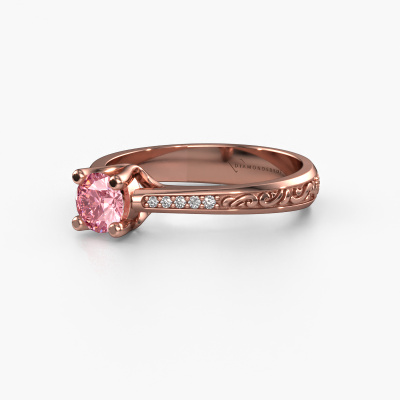 Deze verlovingsring heeft de naam Mei. Deze verlovingsring uitgevoerd in 14 Carat rosé goud is gezet met roze lab grown diamant. Een bijzondere rosé gouden vintage ring, deze unieke verlovingsring die jouw liefde van je leven zeker laat stralen! En dat is precies waar wij voor gaan. In deze Keltische verlovingsring zijn prachtige roze lab grown diamanten verwerkt. Je kunt natuurlijk iedere edelsteen die wij aanbieden hierin laten verwerken. De edelsteen is zorgvuldig geselecteerd, want wij vinden dat op jouw verlovingsring alleen de mooiste edelsteen mag schitteren, toch? Onze goudsmid vervaardigt jouw verlovingsring in ons eigen atelier, en plaatst de roze lab grown diamant met uiterste precisie in de ring. Vervolgens wordt deze bijgewerkt en gepolijst totdat het resultaat zichtbaar is: de perfecte verlovingsring voor de liefde van jouw leven! Dit juweel is speciaal voor jou gemaakt, met aandacht voor detail en design.Wellicht is het je opgevallen dat onze prijzen gemiddeld 30% lager liggen dan bij een andere juwelier. En dat terwijl de kwaliteit in de meeste gevallen nog beter is! Dit komt doordat onze goudsmeden je verlovingsring direct in ons eigen atelier vervaardigen. Hierdoor hoeven we geen dure voorraden te hanteren en kunnen we ieder gewenst detail direct op jouw verlovingsring aanbrengen.Ons team is iedere dag weer bezig om nieuwe ontwerpen toe te voegen, in samenwerking met onze designers en goudsmeden wordt gekeken hoe we tot het mooiste ontwerp kunnen komen. Wij doen ons best om tot een zo gevarieerd mogelijk aanbod te komen. Wellicht heb je zelf al een mooi idee van een sieraad dat je ooit wel eens gezien hebt. Neem dan eens vrijblijvend contact met ons op. Wij maken een offerte voor je op waarbij wij vrij zeker zijn dat we wat betreft kwaliteit en prijs jou versteld zullen laten staan.Om het voor jou makkelijker te maken kun je ieder besteld sieraad binnen 30 dagen na aflevering eenvoudig weer retour sturen.