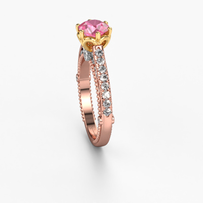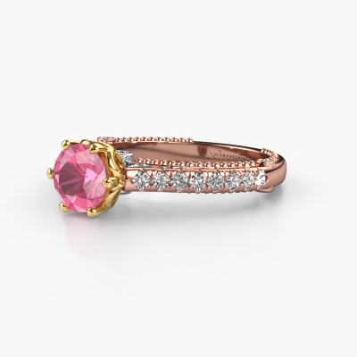 Deze verlovingsring heeft de naam Venita. Deze verlovingsring uitgevoerd in 14 Carat rosé goud is gezet met roze saffier. Een bijzondere rosé gouden vintage ring, deze unieke verlovingsring die jouw liefde van je leven zeker laat stralen! En dat is precies waar wij voor gaan. In deze vintage verlovingsring zijn prachtige roze saffier verwerkt. Je kunt natuurlijk iedere edelsteen die wij aanbieden hierin laten verwerken. De edelsteen is zorgvuldig geselecteerd, want wij vinden dat op jouw verlovingsring alleen de mooiste edelsteen mag schitteren, toch? Onze goudsmid vervaardigt jouw verlovingsring in ons eigen atelier, en plaatst de roze saffier met uiterste precisie in de ring. Vervolgens wordt deze bijgewerkt en gepolijst totdat het resultaat zichtbaar is: de perfecte verlovingsring voor de liefde van jouw leven! Dit juweel wordt speciaal voor jou gemaakt door onze meester goudsmeden in ons eigen atelier.Wist je dat we een beste prijs garantie geven voor jouw verlovingsring? Dit is mogelijk omdat al onze sieraden met de hand gemaakt worden in ons eigen atelier. We hebben geen dure voorraden, en we maken pas je verlovingsring op het moment dat je besteld hebt. Doordat we de hele productie zelf in de hand hebben, kunnen wij je goed informeren over alle eigenschappen van deze ring. Juist omdat het kopen van een verlovingsring online spannend is, begrijpen wij dat het fijn is om alle kenmerken te weten van jouw ring.Ons team is iedere dag weer bezig om nieuwe ontwerpen toe te voegen, in samenwerking met onze designers en goudsmeden wordt gekeken hoe we tot het mooiste ontwerp kunnen komen. Wij doen ons best om tot een zo gevarieerd mogelijk aanbod te komen. Wellicht heb je zelf al een mooi idee van een sieraad dat je ooit wel eens gezien hebt. Neem dan eens vrijblijvend contact met ons op. Wij maken een offerte voor je op waarbij wij vrij zeker zijn dat we wat betreft kwaliteit en prijs jou versteld zullen laten staan.Om het voor jou makkelijker te maken kun je ieder besteld sieraad binnen 30 dagen na aflevering eenvoudig weer retour sturen.
