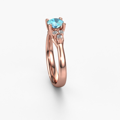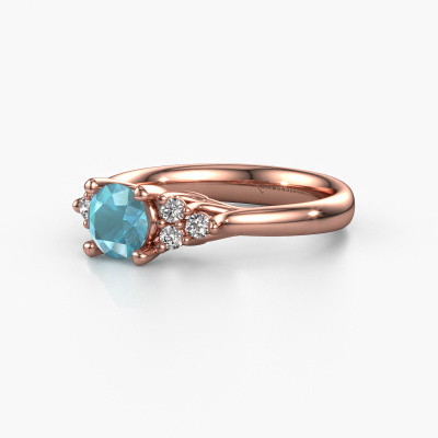 De naam van deze verlovingsring is de Monika RND. Hij is gemaakt van 14 Carat rosé goud en gezet met 5.5 mm blauw topaas. Houdt je vriendin van accessoires met een exclusieve uitstraling? Of wil jij haar graag laten zien dat zij alleen het mooiste juweel verdient? In deze rosé gouden verlovingsring smelten ambachtelijk vakmanschap, liefde en passie samen met de modernste technieken. Het vraagt een geoefend oog, geduld en een vaardige hand om deze verlovingsring tot in de kleinste details perfect samen te stellen. Maar daar gaan onze goudsmeden dan ook absoluut voor! De zetting van deze zorgvuldig geselecteerde blauw topaas geeft de rosé gouden opengewerkte verlovingsring extra allure. De stijl kun je verder aanpassen naar de smaak van jouw vriendin, door een keuze uit diverse edelmetalen en edelstenen. Op die manier creëer jij een unieke verlovingsring voor de meest exclusieve vrouw in jouw leven! Dit juweel wordt met passie en liefde gemaakt door één van onze meestergoudsmeden.Wellicht is het je opgevallen dat onze prijzen gemiddeld 30% lager liggen dan bij een andere juwelier. En dat terwijl de kwaliteit in de meeste gevallen nog beter is! Dit komt doordat onze goudsmeden je verlovingsring direct in ons eigen atelier vervaardigen. Hierdoor hoeven we geen dure voorraden te hanteren en kunnen we ieder gewenst detail direct op jouw verlovingsring aanbrengen.Heb je zelf een specifieke verlovingsring ergens gezien, die je graag aan jouw geliefde zou willen geven? Bespreek gerust jouw ideeën met onze sieradenontwerpers, want wij zetten graag jouw ontwerp om tot een klassieke verlovingsring. Je kunt tijdens het ontwerpproces steeds meekijken, omdat wij met 3D tekeningen werken. Je krijgt hierdoor al een realistische indruk van hoe jouw ontwerp er in werkelijkheid uit komt te zien. Daarbij kun je een dummy vooraf bestellen. Een dummy is een kunststof ring, die precies dezelfde vormen heeft als jouw uiteindelijke ontwerp. Je kunt deze passen en zien of de breedte en dikte bijvoorbeeld naar wens zijn. Wij sturen je graag een vrijblijvende offerte, waarbij je ongetwijfeld versteld zult staan over de prijs en de kwaliteit van de ring en edelstenen.Om het voor jou makkelijker te maken kun je ieder besteld sieraad binnen 30 dagen na aflevering eenvoudig weer retour sturen.
