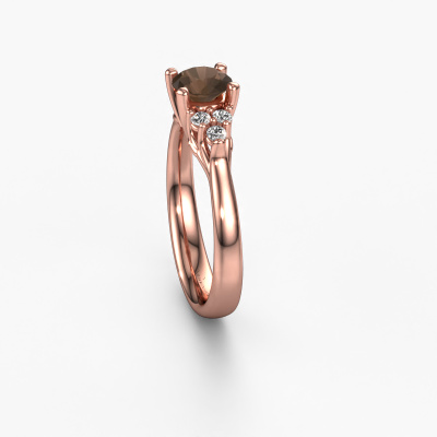 De naam van deze verlovingsring is de Monika RND. Hij is gemaakt van 14 Carat rosé goud en gezet met 5.5 mm rookkwarts. Houdt je vriendin van accessoires met een exclusieve uitstraling? Of wil jij haar graag laten zien dat zij alleen het mooiste juweel verdient? In deze rosé gouden verlovingsring smelten ambachtelijk vakmanschap, liefde en passie samen met de modernste technieken. Het vraagt een geoefend oog, geduld en een vaardige hand om deze verlovingsring tot in de kleinste details perfect samen te stellen. Maar daar gaan onze goudsmeden dan ook absoluut voor! De zetting van deze zorgvuldig geselecteerde rookkwarts geeft de rosé gouden opengewerkte verlovingsring extra allure. De stijl kun je verder aanpassen naar de smaak van jouw vriendin, door een keuze uit diverse edelmetalen en edelstenen. Op die manier creëer jij een unieke verlovingsring voor de meest exclusieve vrouw in jouw leven! Dit juweel wordt met passie en liefde gemaakt door één van onze meestergoudsmeden.Wellicht is het je opgevallen dat onze prijzen gemiddeld 30% lager liggen dan bij een andere juwelier. En dat terwijl de kwaliteit in de meeste gevallen nog beter is! Dit komt doordat onze goudsmeden je verlovingsring direct in ons eigen atelier vervaardigen. Hierdoor hoeven we geen dure voorraden te hanteren en kunnen we ieder gewenst detail direct op jouw verlovingsring aanbrengen.Heb je zelf een specifieke verlovingsring ergens gezien, die je graag aan jouw geliefde zou willen geven? Bespreek gerust jouw ideeën met onze sieradenontwerpers, want wij zetten graag jouw ontwerp om tot een klassieke verlovingsring. Je kunt tijdens het ontwerpproces steeds meekijken, omdat wij met 3D tekeningen werken. Je krijgt hierdoor al een realistische indruk van hoe jouw ontwerp er in werkelijkheid uit komt te zien. Daarbij kun je een dummy vooraf bestellen. Een dummy is een kunststof ring, die precies dezelfde vormen heeft als jouw uiteindelijke ontwerp. Je kunt deze passen en zien of de breedte en dikte bijvoorbeeld naar wens zijn. Wij sturen je graag een vrijblijvende offerte, waarbij je ongetwijfeld versteld zult staan over de prijs en de kwaliteit van de ring en edelstenen.Om het voor jou makkelijker te maken kun je ieder besteld sieraad binnen 30 dagen na aflevering eenvoudig weer retour sturen.
