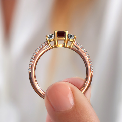 De naam van deze verlovingsring is de Marielle EME. Hij is gemaakt van 14 Carat rosé goud en gezet met 6x4 mm granaat. Houdt je vriendin van accessoires met een exclusieve uitstraling? Of wil jij haar graag laten zien dat zij alleen het mooiste juweel verdient? In deze rosé gouden verlovingsring smelten ambachtelijk vakmanschap, liefde en passie samen met de modernste technieken. Het vraagt een geoefend oog, geduld en een vaardige hand om deze verlovingsring tot in de kleinste details perfect samen te stellen. Maar daar gaan onze goudsmeden dan ook absoluut voor! De zetting van deze zorgvuldig geselecteerde granaat geeft de rosé gouden bijzondere verlovingsring extra allure. De stijl kun je verder aanpassen naar de smaak van jouw vriendin, door een keuze uit diverse edelmetalen en edelstenen. Op die manier creëer jij een unieke verlovingsring voor de meest exclusieve vrouw in jouw leven! Dit juweel is gemaakt om aan je vinger te stralen, ieder sieraad wordt met liefde door onze goudsmeden met de hand gemaakt.Omdat wij zelf alle verlovingsring maken en direct aan jou leveren kunnen wij je een verlovingsring leveren tegen een prijs die je nergens anders zult tegenkomen. Een ring wordt pas gemaakt als we een bestelling krijgen, hierdoor hebben wij geen dure voorraden en kunnen wij je de beste prijs garanderen. Wij begrijpen dat het kopen van een verlovingsring online spannend is en willen daarom je zoveel mogelijk informeren over alle specifieke eigenschappen van de ring die jij koopt.Ons team is iedere dag weer bezig om nieuwe ontwerpen toe te voegen, in samenwerking met onze designers en goudsmeden wordt gekeken hoe we tot het mooiste ontwerp kunnen komen. Wij doen ons best om tot een zo gevarieerd mogelijk aanbod te komen. Wellicht heb je zelf al een mooi idee van een sieraad dat je ooit wel eens gezien hebt. Neem dan eens vrijblijvend contact met ons op. Wij maken een offerte voor je op waarbij wij vrij zeker zijn dat we wat betreft kwaliteit en prijs jou versteld zullen laten staan.Om het voor jou makkelijker te maken kun je ieder besteld sieraad binnen 30 dagen na aflevering eenvoudig weer retour sturen.