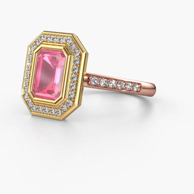 De naam van deze verlovingsring is de Noud 2 EME. Hij is gemaakt van 14 Carat rosé goud en gezet met 8x6 mm roze saffier. Houdt je vriendin van accessoires met een exclusieve uitstraling? Of wil jij haar graag laten zien dat zij alleen het mooiste juweel verdient? In deze rosé gouden verlovingsring smelten ambachtelijk vakmanschap, liefde en passie samen met de modernste technieken. Het vraagt een geoefend oog, geduld en een vaardige hand om deze verlovingsring tot in de kleinste details perfect samen te stellen. Maar daar gaan onze goudsmeden dan ook absoluut voor! De zetting van deze zorgvuldig geselecteerde roze saffier geeft de rosé gouden pavé verlovingsring extra allure. De stijl kun je verder aanpassen naar de smaak van jouw vriendin, door een keuze uit diverse edelmetalen en edelstenen. Op die manier creëer jij een unieke verlovingsring voor de meest exclusieve vrouw in jouw leven! Dit juweel is gemaakt om aan je vinger te stralen, ieder sieraad wordt met liefde door onze goudsmeden met de hand gemaakt.Onze goudsmeden vervaardigen pas je Noud 2 EME verlovingsring, zodra je deze besteld hebt. We hebben geen voorraden. Het voordeel hiervan is dat we de voorraad niet door hoeven te berekenen in de prijs, en kunnen daardoor sieraden leveren tegen een bijzonder lage prijs.Heb je zelf een specifieke verlovingsring ergens gezien, die je graag aan jouw geliefde zou willen geven? Bespreek gerust jouw ideeën met onze sieradenontwerpers, want wij zetten graag jouw ontwerp om tot een exclusieve verlovingsring. Je kunt tijdens het ontwerpproces steeds meekijken, omdat wij met 3D tekeningen werken. Je krijgt hierdoor al een realistische indruk van hoe jouw ontwerp er in werkelijkheid uit komt te zien. Daarbij kun je een dummy vooraf bestellen. Een dummy is een kunststof ring, die precies dezelfde vormen heeft als jouw uiteindelijke ontwerp. Je kunt deze passen en zien of de breedte en dikte bijvoorbeeld naar wens zijn. Wij sturen je graag een vrijblijvende offerte, waarbij je ongetwijfeld versteld zult staan over de prijs en de kwaliteit van de ring en edelstenen.Om het voor jou makkelijker te maken kun je ieder besteld sieraad binnen 30 dagen na aflevering eenvoudig weer retour sturen.