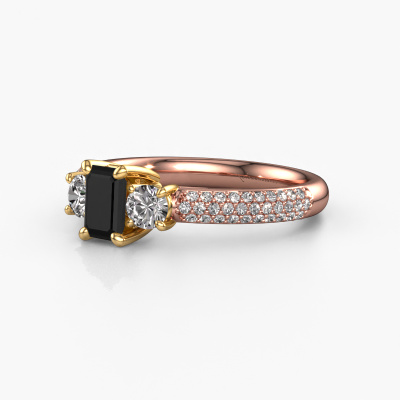 De naam van deze verlovingsring is de Marielle EME. Hij is gemaakt van 14 Carat rosé goud en gezet met 0.84 crt zwarte diamant. Houdt je vriendin van accessoires met een exclusieve uitstraling? Of wil jij haar graag laten zien dat zij alleen het mooiste juweel verdient? In deze rosé gouden verlovingsring smelten ambachtelijk vakmanschap, liefde en passie samen met de modernste technieken. Het vraagt een geoefend oog, geduld en een vaardige hand om deze verlovingsring tot in de kleinste details perfect samen te stellen. Maar daar gaan onze goudsmeden dan ook absoluut voor! De zetting van deze zorgvuldig geselecteerde zwarte diamanten geeft de rosé gouden bijzondere verlovingsring extra allure. De stijl kun je verder aanpassen naar de smaak van jouw vriendin, door een keuze uit diverse edelmetalen en edelstenen. Op die manier creëer jij een unieke verlovingsring voor de meest exclusieve vrouw in jouw leven! Dit juweel is gemaakt om aan je vinger te stralen, ieder sieraad wordt met liefde door onze goudsmeden met de hand gemaakt.Omdat wij zelf alle verlovingsring maken en direct aan jou leveren kunnen wij je een verlovingsring leveren tegen een prijs die je nergens anders zult tegenkomen. Een ring wordt pas gemaakt als we een bestelling krijgen, hierdoor hebben wij geen dure voorraden en kunnen wij je de beste prijs garanderen. Wij begrijpen dat het kopen van een verlovingsring online spannend is en willen daarom je zoveel mogelijk informeren over alle specifieke eigenschappen van de ring die jij koopt.Ons team is iedere dag weer bezig om nieuwe ontwerpen toe te voegen, in samenwerking met onze designers en goudsmeden wordt gekeken hoe we tot het mooiste ontwerp kunnen komen. Wij doen ons best om tot een zo gevarieerd mogelijk aanbod te komen. Wellicht heb je zelf al een mooi idee van een sieraad dat je ooit wel eens gezien hebt. Neem dan eens vrijblijvend contact met ons op. Wij maken een offerte voor je op waarbij wij vrij zeker zijn dat we wat betreft kwaliteit en prijs jou versteld zullen laten staan.Om het voor jou makkelijker te maken kun je ieder besteld sieraad binnen 30 dagen na aflevering eenvoudig weer retour sturen.