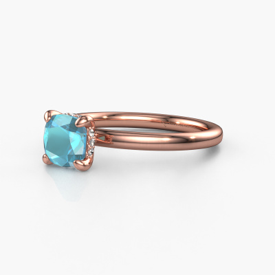 Deze verlovingsring heeft de naam Simone CUS 2. Deze ring, uitgevoerd in 14 Carat rosé goud is gezet met blauw topaas. Ben je op zoek naar een unieke rosé gouden verlovingsring met een unieke uitstraling? Dan is dit een mooie ring, die je zelf naar jouw of haar smaak verder kunt aanpassen. In deze unieke verlovingsring is prachtige blauw topaas verwerkt. Deze is zorgvuldig geselecteerd, want op jouw gracieuze verlovingsring mag alleen de mooiste edelsteen schitteren. Onze goudsmid vervaardigt jouw verlovingsring in ons eigen atelier, en plaatst de blauw topaas met uiterste precisie in de ring. Vervolgens wordt deze bijgewerkt en gepolijst totdat het resultaat zichtbaar is: de perfecte verlovingsring voor de liefde van jouw leven!Door het gebruik van de modernste technieken, gecombineerd met ambachtelijk vakmanschap kunnen wij alle verlovingsringen zelf in ons atelier maken. Ieder sieraad wordt pas gemaakt nadat deze besteld is. Dit heeft als bijkomend voordeel dat we kunnen leveren tegen een prijs die je nergens anders tegenkomt.Ons team is iedere dag weer bezig om nieuwe ontwerpen toe te voegen, in samenwerking met onze designers en goudsmeden wordt gekeken hoe we tot het mooiste ontwerp kunnen komen. Wij doen ons best om tot een zo gevarieerd mogelijk aanbod te komen. Wellicht heb je zelf al een mooi idee van een sieraad dat je ooit wel eens gezien hebt. Neem dan eens vrijblijvend contact met ons op. Wij maken een offerte voor je op waarbij wij vrij zeker zijn dat we wat betreft kwaliteit en prijs jou versteld zullen laten staan.Om het voor jou makkelijker te maken kun je ieder besteld sieraad binnen 30 dagen na aflevering eenvoudig weer retour sturen.