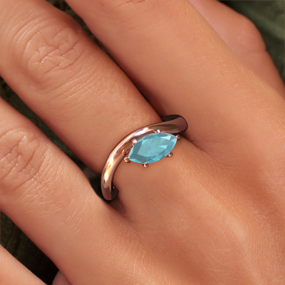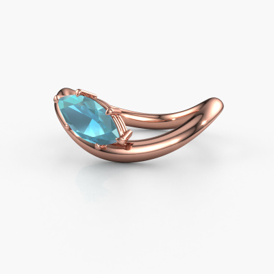 Deze verlovingsring heeft de naam Chloe MRQ. Deze ring, uitgevoerd in 14 Carat rosé goud is gezet met blauw topaas. Ben je op zoek naar een unieke rosé gouden verlovingsring met een moderne uitstraling? Dan is dit een mooie ring, die je zelf naar