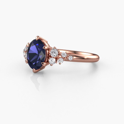 Bovenstaande verlovingsring heeft de naam Royce OVL. Dit type verlovingsring noemen we een pavé solitaire verlovingsring omdat hij een enkele middensteen heeft waarbij de banden van de verlovingsring ook volgezet zijn. Deze verlovingsring is uitgevoerd in 14 Carat rosé goud en heeft als middensteen een ovale saffier ter grootte van 8x6 mm, en in de zijbanden zijn lab-grown diamanten gezet. Ieder juweel wordt met passie en liefde gemaakt door één van onze meestergoudsmeden.. Deze fantasie rosé gouden pavé solitaire verlovingsring heeft een schitterende ovale saffier als center steen, waarbij in de band nog meer lab-grown diamanten zijn gezet om de middensteen nog meer te accentueren. Doordat de zetting van de pootjes om de saffier open is, vangt de saffier het licht van alle kanten op en schittert hierdoor optimaal. Hierboven kun je zien hoe onze goudsmid de verlovingsring heel precies tot in de kleinste details heeft bewerkt, zodat de wat hoger gelegen saffier een echte eyecatcher is. Wat een prachtige verlovingsring om te geven bij je aanzoek aan de liefde van jouw leven, aan jouw stralende middelpunt!Wist je dat we een beste prijs garantie geven voor jouw verlovingsring? Dit is mogelijk omdat al onze sieraden met de hand gemaakt worden in ons eigen atelier. We hebben geen dure voorraden, en we maken pas je verlovingsring op het moment dat je besteld hebt. Doordat we de hele productie zelf in de hand hebben, kunnen wij je goed informeren over alle eigenschappen van deze ring. Juist omdat het kopen van een verlovingsring online spannend is, begrijpen wij dat het fijn is om alle kenmerken te weten van jouw ring.Heb je zelf een specifieke verlovingsring ergens gezien, die je graag aan jouw geliefde zou willen geven? Bespreek gerust jouw ideeën met onze sieradenontwerpers, want wij zetten graag jouw ontwerp om tot een fantasie verlovingsring. Je kunt tijdens het ontwerpproces steeds meekijken, omdat wij met 3D tekeningen werken. Je krijgt hierdoor al een realistische indruk van hoe jouw ontwerp er in werkelijkheid uit komt te zien. Daarbij kun je een dummy vooraf bestellen. Een dummy is een kunststof ring, die precies dezelfde vormen heeft als jouw uiteindelijke ontwerp. Je kunt deze passen en zien of de breedte en dikte bijvoorbeeld naar wens zijn. Wij sturen je graag een vrijblijvende offerte, waarbij je ongetwijfeld versteld zult staan over de prijs en de kwaliteit van de ring en edelstenen.Om het voor jou makkelijker te maken kun je ieder besteld sieraad binnen 30 dagen na aflevering eenvoudig weer retour sturen.