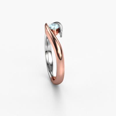 Deze aanzoeksring heeft de naam Alaina. Hij is uitgevoerd in 14 Carat rosé goud en gezet met aquamarijn. Ga jij graag mee met eigentijdse trends? En wil je dit ook terug laten komen in je keuze voor een unieke aanzoeksring? Deze sierlijke aanzoeksring is een bijzondere ring, die je zelf naar jouw of haar stijl verder kunt aanpassen. In deze moderne rosé gouden aanzoeksring is aquamarijn verwerkt. Deze aquamarijn zijn speciaal voor deze aanzoeksring geselecteerd, om het mooiste effect te creëren. Onze goudsmid vervaardigt jouw aanzoeksring in ons eigen atelier, en plaatst de aquamarijn heel zorgvuldig in de ring. Vervolgens wordt deze bijgewerkt en gepolijst totdat de perfecte aanzoeksring is ontstaan, perfect voor de liefde van jouw leven! Dit juweel is uniek, doordat je deze ring geheel naar eigen wensen kunt samenstellen.Door onze modernste technieken kunnen wij met uiterste precisie prachtige sieraden te ontwerpen en voor jou personaliseren in de hoogste juwelierskwaliteit. Tegelijkertijd zijn onze aanzoeksringen altijd 30% goedkoper dan bij een andere juwelier. Dit komt doordat alle aanzoeksringen pas vervaardigd worden op het moment dat deze besteld wordt en we daardoor geen dure voorraden hoeven te hanteren. Mocht je aan een bepaald budget gebonden zijn, kunnen we je graag adviseren welke combinatie je het beste kunt kiezen.Ons team is iedere dag weer bezig om nieuwe ontwerpen toe te voegen, in samenwerking met onze designers en goudsmeden wordt gekeken hoe we tot het mooiste ontwerp kunnen komen. Wij doen ons best om tot een zo gevarieerd mogelijk aanbod te komen. Wellicht heb je zelf al een mooi idee van een sieraad dat je ooit wel eens gezien hebt. Neem dan eens vrijblijvend contact met ons op. Wij maken een offerte voor je op waarbij wij vrij zeker zijn dat we wat betreft kwaliteit en prijs jou versteld zullen laten staan.Om het voor jou makkelijker te maken kun je ieder besteld sieraad binnen 30 dagen na aflevering eenvoudig weer retour sturen.