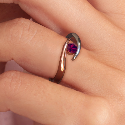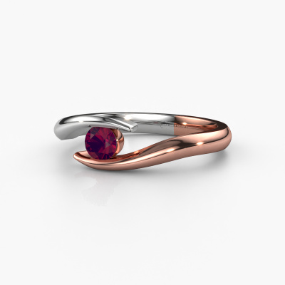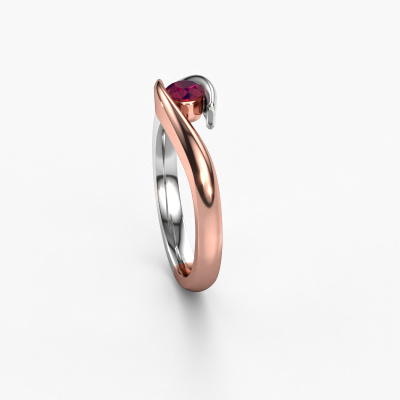 Deze aanzoeksring heeft de naam Alaina. Hij is uitgevoerd in 14 Carat rosé goud en gezet met rhodoliet. Ga jij graag mee met eigentijdse trends? En wil je dit ook terug laten komen in je keuze voor een unieke aanzoeksring? Deze sierlijke aanzoeksring is een bijzondere ring, die je zelf naar jouw of haar stijl verder kunt aanpassen. In deze moderne rosé gouden aanzoeksring is rhodoliet verwerkt. Deze rhodoliet zijn speciaal voor deze aanzoeksring geselecteerd, om het mooiste effect te creëren. Onze goudsmid vervaardigt jouw aanzoeksring in ons eigen atelier, en plaatst de rhodoliet heel zorgvuldig in de ring. Vervolgens wordt deze bijgewerkt en gepolijst totdat de perfecte aanzoeksring is ontstaan, perfect voor de liefde van jouw leven! Dit juweel is uniek, doordat je deze ring geheel naar eigen wensen kunt samenstellen.Door onze modernste technieken kunnen wij met uiterste precisie prachtige sieraden te ontwerpen en voor jou personaliseren in de hoogste juwelierskwaliteit. Tegelijkertijd zijn onze aanzoeksringen altijd 30% goedkoper dan bij een andere juwelier. Dit komt doordat alle aanzoeksringen pas vervaardigd worden op het moment dat deze besteld wordt en we daardoor geen dure voorraden hoeven te hanteren. Mocht je aan een bepaald budget gebonden zijn, kunnen we je graag adviseren welke combinatie je het beste kunt kiezen.Ons team is iedere dag weer bezig om nieuwe ontwerpen toe te voegen, in samenwerking met onze designers en goudsmeden wordt gekeken hoe we tot het mooiste ontwerp kunnen komen. Wij doen ons best om tot een zo gevarieerd mogelijk aanbod te komen. Wellicht heb je zelf al een mooi idee van een sieraad dat je ooit wel eens gezien hebt. Neem dan eens vrijblijvend contact met ons op. Wij maken een offerte voor je op waarbij wij vrij zeker zijn dat we wat betreft kwaliteit en prijs jou versteld zullen laten staan.Om het voor jou makkelijker te maken kun je ieder besteld sieraad binnen 30 dagen na aflevering eenvoudig weer retour sturen.