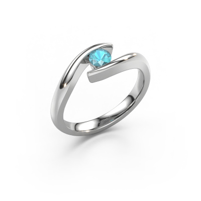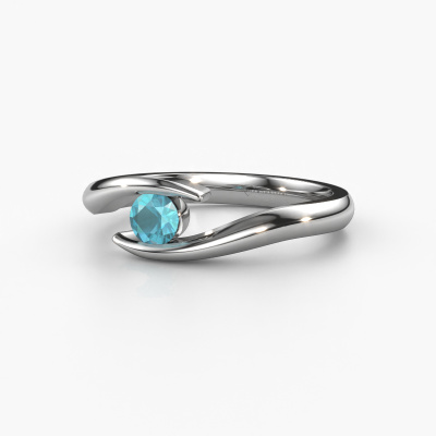 Deze aanzoeksring heeft de naam Alaina. Hij is uitgevoerd in 14 Carat witgoud en gezet met blauw topaas. Ga jij graag mee met eigentijdse trends? En wil je dit ook terug laten komen in je keuze voor een unieke aanzoeksring? Deze sierlijke aanzoeksring is een bijzondere ring, die je zelf naar jouw of haar stijl verder kunt aanpassen. In deze moderne witgouden aanzoeksring is blauw topaas verwerkt. Deze blauw topaas zijn speciaal voor deze aanzoeksring geselecteerd, om het mooiste effect te creëren. Onze goudsmid vervaardigt jouw aanzoeksring in ons eigen atelier, en plaatst de blauw topaas heel zorgvuldig in de ring. Vervolgens wordt deze bijgewerkt en gepolijst totdat de perfecte aanzoeksring is ontstaan, perfect voor de liefde van jouw leven! Dit juweel is uniek, doordat je deze ring geheel naar eigen wensen kunt samenstellen.Door onze modernste technieken kunnen wij met uiterste precisie prachtige sieraden te ontwerpen en voor jou personaliseren in de hoogste juwelierskwaliteit. Tegelijkertijd zijn onze aanzoeksringen altijd 30% goedkoper dan bij een andere juwelier. Dit komt doordat alle aanzoeksringen pas vervaardigd worden op het moment dat deze besteld wordt en we daardoor geen dure voorraden hoeven te hanteren. Mocht je aan een bepaald budget gebonden zijn, kunnen we je graag adviseren welke combinatie je het beste kunt kiezen.Ons team is iedere dag weer bezig om nieuwe ontwerpen toe te voegen, in samenwerking met onze designers en goudsmeden wordt gekeken hoe we tot het mooiste ontwerp kunnen komen. Wij doen ons best om tot een zo gevarieerd mogelijk aanbod te komen. Wellicht heb je zelf al een mooi idee van een sieraad dat je ooit wel eens gezien hebt. Neem dan eens vrijblijvend contact met ons op. Wij maken een offerte voor je op waarbij wij vrij zeker zijn dat we wat betreft kwaliteit en prijs jou versteld zullen laten staan.Om het voor jou makkelijker te maken kun je ieder besteld sieraad binnen 30 dagen na aflevering eenvoudig weer retour sturen.