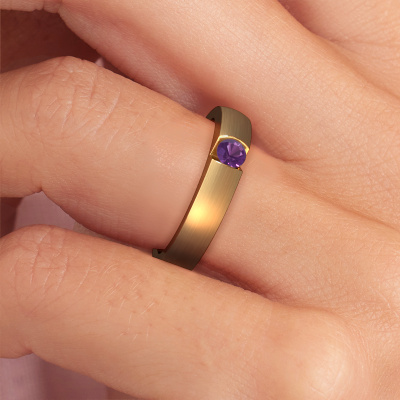 Deze verlovingsring heeft de naam Theresia. De verlovingsring is uitgevoerd in 14 Carat goud is gezet met amethist 3.4 mm. Het bijzondere van deze verlovingsring met een spanzetting is dat de aandacht echt naar de amethist getrokken wordt. Onze goudsmid maakt bij het vervaardigen van deze verlovingsring gebruik van speciale technieken, waardoor de amethist ingeklemd wordt door de gouden ring. Hierdoor heeft het licht veel vrij spel op de edelsteen, dat zorgt voor een prachtige schittering en allure. Een prachtig staaltje vakmanschap! Het resultaat is een unieke ring, met een moderne uitstraling, gepassioneerd met de hand gemaakt door onze goudsmid, speciaal voor de liefde van jouw leven! Wij raden voor deze verlovingsring een wat hardere steen aan, zoals een diamant omdat er door de spanning grote krachten op de edelsteen komen te staan. Dit sieraad wordt speciaal voor jou gemaakt door onze meester goudsmeden in ons eigen atelier.Door onze modernste technieken kunnen wij met uiterste precisie prachtige sieraden te ontwerpen en voor jou personaliseren in de hoogste juwelierskwaliteit. Tegelijkertijd zijn onze verlovingsringen altijd 30% goedkoper dan bij een andere juwelier. Dit komt doordat alle verlovingsringen pas vervaardigd worden op het moment dat deze besteld wordt en we daardoor geen dure voorraden hoeven te hanteren. Mocht je aan een bepaald budget gebonden zijn, kunnen we je graag adviseren welke combinatie je het beste kunt kiezen.Ons team ontwerpt dagelijks nieuwe ringen in diverse stijlen. Heb je zelf een solitaire verlovingsring ergens gezien, die jij het liefst aan jouw geliefde zou willen geven? Je kunt altijd jouw ideeën en ontwerp met onze sieradenontwerpers bespreken, want wij zetten graag jouw ontwerp om tot een moderne verlovingsring. Je kunt tijdens het ontwerpproces steeds meekijken, omdat het ontwerp in een zeer gedetailleerde 3D tekening wordt omgezet. Daarbij kun je een dummy bestellen van het uiteindelijke ontwerp. Een dummy is een kunststof ring, die precies dezelfde vormen heeft als jouw uiteindelijke ontwerp. Je kunt deze passen en zien of de ontworpen verlovingsring helemaal naar jouw wens is. Wij sturen je graag een vrijblijvende offerte, waarbij je ongetwijfeld versteld zult staan over de prijs en de kwaliteit van de ring en edelstenen.Om het voor jou makkelijker te maken kun je ieder besteld sieraad binnen 30 dagen na aflevering eenvoudig weer retour sturen.