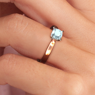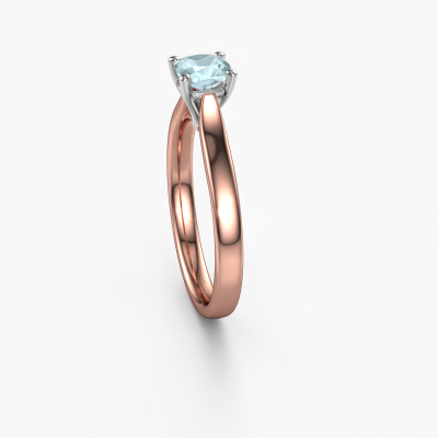 Deze verlovingsring heeft de naam Mignon cus 1. Deze strakke verlovingsring uitgevoerd, in 14 Carat rosé goud is gezet met 5 mm aquamarijn. Deze exclusieve rosé gouden solitaire verlovingsring is een puur staaltje vakmanschap! Alle kleine details zijn door onze goudsmid met veel geduld en passie vervaardigd. Dit ambacht vraagt een deskundig oog en vaardige hand om deze verlovingsring met uiterste precisie samen te stellen. En dat is precies waar onze goudsmeden enthousiast van worden! De prachtige aquamarijn zijn op een bijzondere manier gezet, zodat deze nog beter tot zijn recht komen. Dit geeft de verlovingsring extra allure. De verlovingsring is al uniek door zijn natuurlijke edelsteen, die we speciaal geselecteerd hebben voor deze ring. Daarnaast kun je zelf de samenstelling kiezen van het edelmetaal, waardoor je uiteindelijk een unieke verlovingsring hebt gecreëerd voor de meest exclusieve vrouw in je leven! Dit juweel is gemaakt door een team van gedreven goudsmeden en designers. Hierdoor zal dit unieke pronkstuk een echte eyecatcher zijn.Wellicht is het je opgevallen dat onze prijzen gemiddeld 30% lager liggen dan bij een andere juwelier. En dat terwijl de kwaliteit in de meeste gevallen nog beter is! Dit komt doordat onze goudsmeden je verlovingsring direct in ons eigen atelier vervaardigen. Hierdoor hoeven we geen dure voorraden te hanteren en kunnen we ieder gewenst detail direct op jouw verlovingsring aanbrengen.Ons team ontwerpt dagelijks nieuwe ringen in diverse stijlen. Heb je zelf een solitaire verlovingsring ergens gezien, die jij het liefst aan jouw geliefde zou willen geven? Je kunt altijd jouw ideeën en ontwerp met onze sieradenontwerpers bespreken, want wij zetten graag jouw ontwerp om tot een luxe verlovingsring. Je kunt tijdens het ontwerpproces steeds meekijken, omdat het ontwerp in een zeer gedetailleerde 3D tekening wordt omgezet. Daarbij kun je een dummy bestellen van het uiteindelijke ontwerp. Een dummy is een kunststof ring, die precies dezelfde vormen heeft als jouw uiteindelijke ontwerp. Je kunt deze passen en zien of de ontworpen verlovingsring helemaal naar jouw wens is. Wij sturen je graag een vrijblijvende offerte, waarbij je ongetwijfeld versteld zult staan over de prijs en de kwaliteit van de ring en edelstenen.Om het voor jou makkelijker te maken kun je ieder besteld sieraad binnen 30 dagen na aflevering eenvoudig weer retour sturen.