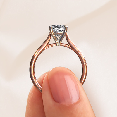 Deze verlovingsring heeft de naam Mignon cus 1. Deze strakke verlovingsring uitgevoerd, in 14 Carat rosé goud is gezet met 1.30 crt diamant. Deze exclusieve rosé gouden solitaire verlovingsring is een puur staaltje vakmanschap! Alle kleine details zijn door onze goudsmid met veel geduld en passie vervaardigd. Dit ambacht vraagt een deskundig oog en vaardige hand om deze verlovingsring met uiterste precisie samen te stellen. En dat is precies waar onze goudsmeden enthousiast van worden! De prachtige diamanten zijn op een bijzondere manier gezet, zodat deze nog beter tot zijn recht komen. Dit geeft de verlovingsring extra allure. De verlovingsring is al uniek door zijn natuurlijke edelsteen, die we speciaal geselecteerd hebben voor deze ring. Daarnaast kun je zelf de samenstelling kiezen van het edelmetaal, waardoor je uiteindelijk een unieke verlovingsring hebt gecreëerd voor de meest exclusieve vrouw in je leven! Dit juweel is gemaakt door een team van gedreven goudsmeden en designers. Hierdoor zal dit unieke pronkstuk een echte eyecatcher zijn.Wellicht is het je opgevallen dat onze prijzen gemiddeld 30% lager liggen dan bij een andere juwelier. En dat terwijl de kwaliteit in de meeste gevallen nog beter is! Dit komt doordat onze goudsmeden je verlovingsring direct in ons eigen atelier vervaardigen. Hierdoor hoeven we geen dure voorraden te hanteren en kunnen we ieder gewenst detail direct op jouw verlovingsring aanbrengen.Ons team ontwerpt dagelijks nieuwe ringen in diverse stijlen. Heb je zelf een solitaire verlovingsring ergens gezien, die jij het liefst aan jouw geliefde zou willen geven? Je kunt altijd jouw ideeën en ontwerp met onze sieradenontwerpers bespreken, want wij zetten graag jouw ontwerp om tot een luxe verlovingsring. Je kunt tijdens het ontwerpproces steeds meekijken, omdat het ontwerp in een zeer gedetailleerde 3D tekening wordt omgezet. Daarbij kun je een dummy bestellen van het uiteindelijke ontwerp. Een dummy is een kunststof ring, die precies dezelfde vormen heeft als jouw uiteindelijke ontwerp. Je kunt deze passen en zien of de ontworpen verlovingsring helemaal naar jouw wens is. Wij sturen je graag een vrijblijvende offerte, waarbij je ongetwijfeld versteld zult staan over de prijs en de kwaliteit van de ring en edelstenen.Om het voor jou makkelijker te maken kun je ieder besteld sieraad binnen 30 dagen na aflevering eenvoudig weer retour sturen.