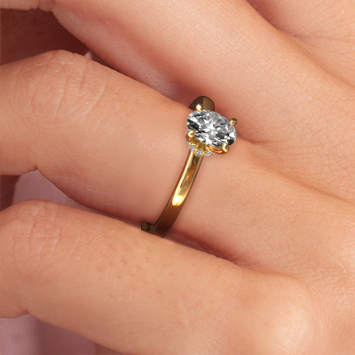 Bovenstaande verlovingsring heeft de naam Crystal OVL 3, dit type verlovingsring noemen we een solitaire ring omdat hij een enkele edelsteen bevat. De verlovingsring is uitgevoerd in 14 Carat goud en heeft een ovale diamant ter grootte van 0.60 crt. Deze unieke gouden solitaire ring met een schitterende ovale diamant is een prachtige verlovingsring. Doordat de chatonzetting open is, is de lichtinval op de edelsteen optimaal. Ook plaatsen we de edelsteen hoog op de ring, waardoor deze extra opvalt. De diamant is bijvoorbeeld een prachtige edelsteen om aan de liefde van je leven te schenken, omdat deze symbool staat voor eeuwige liefde en zuiverheid. En dit symbool straalt midden op deze solitaire ring. Zo heeft iedere edelsteen een mooie symbolische betekenis. Deze solitaire verlovingsring kunt u zelf samenstellen in verschillende edelmetaal combinaties. Deze heeft de combinatie 14 Carat goud met goud. Ieder juweel wordt speciaal voor jou gemaakt door onze meester goudsmeden in ons eigen atelier.Wist je dat we een beste prijs garantie geven voor jouw verlovingsring? Dit is mogelijk omdat al onze sieraden met de hand gemaakt worden in ons eigen atelier. We hebben geen dure voorraden, en we maken pas je verlovingsring op het moment dat je besteld hebt. Doordat we de hele productie zelf in de hand hebben, kunnen wij je goed informeren over alle eigenschappen van deze ring. Juist omdat het kopen van een verlovingsring online spannend is, begrijpen wij dat het fijn is om alle kenmerken te weten van jouw ring.Iedere dag is ons team van goudsmeden en sieradenontwerpers aan het werk om nieuwe sieraden te creëren. Het kan zijn dat je ergens een unieke verlovingsring gezien hebt, die je als basis wilt nemen bij het ontwerpen van jouw unieke ring. Neem gerust contact met ons op en we zullen je een aanbod doen, waar je vrijwel zeker verwonderd zult zijn over de kwaliteit en de prijs.Om het voor jou makkelijker te maken kun je ieder besteld sieraad binnen 30 dagen na aflevering eenvoudig weer retour sturen.