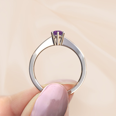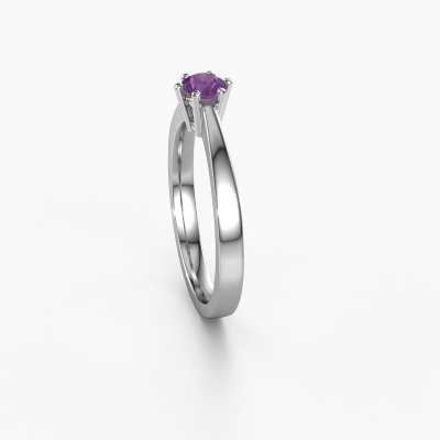 Bovenstaande verlovingsring heeft de naam Noortje, dit type verlovingsring noemen we een solitaire ring omdat hij een enkele edelsteen bevat. De verlovingsring is uitgevoerd in platina en heeft een ronde amethist ter grootte van 4 mm. Deze klassieke platina solitaire ring met een schitterende ronde amethist is een prachtige verlovingsring. Doordat de chatonzetting open is, is de lichtinval op de edelsteen optimaal. Ook plaatsen we de edelsteen hoog op de ring, waardoor deze extra opvalt. De diamant is bijvoorbeeld een prachtige edelsteen om aan de liefde van je leven te schenken, omdat deze symbool staat voor eeuwige liefde en zuiverheid. En dit symbool straalt midden op deze solitaire ring. Zo heeft iedere edelsteen een mooie symbolische betekenis. Deze solitaire verlovingsring kunt u zelf samenstellen in verschillende edelmetaal combinaties. Deze heeft de combinatie platina met platina. Ieder juweel is gemaakt door een team van gedreven goudsmeden en designers. Hierdoor zal dit unieke pronkstuk een echte eyecatcher zijn.Door het gebruik van de modernste technieken, gecombineerd met ambachtelijk vakmanschap kunnen wij alle verlovingsringen zelf in ons atelier maken. Ieder sieraad wordt pas gemaakt nadat deze besteld is. Dit heeft als bijkomend voordeel dat we kunnen leveren tegen een prijs die je nergens anders tegenkomt.Ons team is iedere dag weer bezig om nieuwe ontwerpen toe te voegen, in samenwerking met onze designers en goudsmeden wordt gekeken hoe we tot het mooiste ontwerp kunnen komen. Wij doen ons best om tot een zo gevarieerd mogelijk aanbod te komen. Wellicht heb je zelf al een mooi idee van een sieraad dat je ooit wel eens gezien hebt. Neem dan eens vrijblijvend contact met ons op. Wij maken een offerte voor je op waarbij wij vrij zeker zijn dat we wat betreft kwaliteit en prijs jou versteld zullen laten staan.Om het voor jou makkelijker te maken kun je ieder besteld sieraad binnen 30 dagen na aflevering eenvoudig weer retour sturen.