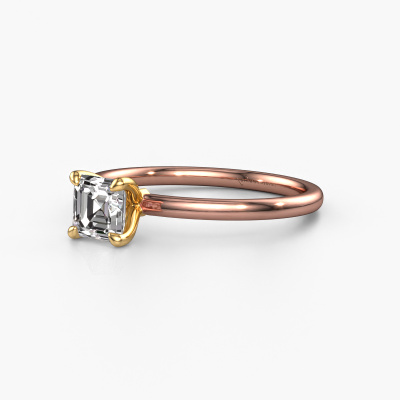 Bovenstaande verlovingsring heeft de naam Crystal ASSC 1, dit type verlovingsring noemen we een solitaire ring omdat hij een enkele edelsteen bevat. De verlovingsring is uitgevoerd in 14 Carat rosé goud en heeft een asscher lab-grown diamant ter grootte van 0.75 crt. Deze moderne rosé gouden solitaire ring met een schitterende asscher lab-grown diamant is een prachtige verlovingsring. Doordat de chatonzetting open is, is de lichtinval op de edelsteen optimaal. Ook plaatsen we de edelsteen hoog op de ring, waardoor deze extra opvalt. De diamant is bijvoorbeeld een prachtige edelsteen om aan de liefde van je leven te schenken, omdat deze symbool staat voor eeuwige liefde en zuiverheid. En dit symbool straalt midden op deze solitaire ring. Zo heeft iedere edelsteen een mooie symbolische betekenis. Deze solitaire verlovingsring kunt u zelf samenstellen in verschillende edelmetaal combinaties. Deze heeft de combinatie 14 Carat rosé goud met goud. Ieder juweel is gemaakt door een team van gedreven goudsmeden en designers. Hierdoor zal dit unieke pronkstuk een echte eyecatcher zijn.Door het gebruik van de modernste technieken, gecombineerd met ambachtelijk vakmanschap kunnen wij alle verlovingsringen zelf in ons atelier maken. Ieder sieraad wordt pas gemaakt nadat deze besteld is. Dit heeft als bijkomend voordeel dat we kunnen leveren tegen een prijs die je nergens anders tegenkomt.Ons team is iedere dag weer bezig om nieuwe ontwerpen toe te voegen, in samenwerking met onze designers en goudsmeden wordt gekeken hoe we tot het mooiste ontwerp kunnen komen. Wij doen ons best om tot een zo gevarieerd mogelijk aanbod te komen. Wellicht heb je zelf al een mooi idee van een sieraad dat je ooit wel eens gezien hebt. Neem dan eens vrijblijvend contact met ons op. Wij maken een offerte voor je op waarbij wij vrij zeker zijn dat we wat betreft kwaliteit en prijs jou versteld zullen laten staan.Om het voor jou makkelijker te maken kun je ieder besteld sieraad binnen 30 dagen na aflevering eenvoudig weer retour sturen.