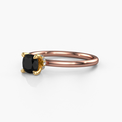 Bovenstaande verlovingsring heeft de naam Crystal CUS 3, dit type verlovingsring noemen we een solitaire ring omdat hij een enkele edelsteen bevat. De verlovingsring is uitgevoerd in 14 Carat rosé goud en heeft een cushion zwarte diamant ter grootte van 0.70 crt. Deze modieuze rosé gouden solitaire ring met een schitterende cushion zwarte diamant is een prachtige verlovingsring. Doordat de chatonzetting open is, is de lichtinval op de edelsteen optimaal. Ook plaatsen we de edelsteen hoog op de ring, waardoor deze extra opvalt. De diamant is bijvoorbeeld een prachtige edelsteen om aan de liefde van je leven te schenken, omdat deze symbool staat voor eeuwige liefde en zuiverheid. En dit symbool straalt midden op deze solitaire ring. Zo heeft iedere edelsteen een mooie symbolische betekenis. Deze solitaire verlovingsring kunt u zelf samenstellen in verschillende edelmetaal combinaties. Deze heeft de combinatie 14 Carat rosé goud met goud. Ieder juweel is gemaakt door een team van gedreven goudsmeden en designers. Hierdoor zal dit unieke pronkstuk een echte eyecatcher zijn.Door het gebruik van de modernste technieken, gecombineerd met ambachtelijk vakmanschap kunnen wij alle verlovingsringen zelf in ons atelier maken. Ieder sieraad wordt pas gemaakt nadat deze besteld is. Dit heeft als bijkomend voordeel dat we kunnen leveren tegen een prijs die je nergens anders tegenkomt.Iedere dag is ons team van goudsmeden en sieradenontwerpers aan het werk om nieuwe sieraden te creëren. Het kan zijn dat je ergens een modieuze verlovingsring gezien hebt, die je als basis wilt nemen bij het ontwerpen van jouw unieke ring. Neem gerust contact met ons op en we zullen je een aanbod doen, waar je vrijwel zeker verwonderd zult zijn over de kwaliteit en de prijs.Om het voor jou makkelijker te maken kun je ieder besteld sieraad binnen 30 dagen na aflevering eenvoudig weer retour sturen.