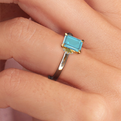 Bovenstaande verlovingsring heeft de naam Crystal EME 3, dit type verlovingsring noemen we een solitaire ring omdat hij een enkele edelsteen bevat. De verlovingsring is uitgevoerd in 14 Carat witgoud en heeft een smaragd geslepen blauw topaas ter grootte van 7x5 mm. Deze klassieke witgouden solitaire ring met een schitterende smaragd geslepen blauw topaas is een prachtige verlovingsring. Doordat de chatonzetting open is, is de lichtinval op de edelsteen optimaal. Ook plaatsen we de edelsteen hoog op de ring, waardoor deze extra opvalt. De diamant is bijvoorbeeld een prachtige edelsteen om aan de liefde van je leven te schenken, omdat deze symbool staat voor eeuwige liefde en zuiverheid. En dit symbool straalt midden op deze solitaire ring. Zo heeft iedere edelsteen een mooie symbolische betekenis. Deze solitaire verlovingsring kunt u zelf samenstellen in verschillende edelmetaal combinaties. Deze heeft de combinatie 14 Carat witgoud met goud. Ieder juweel is gemaakt door een team van gedreven goudsmeden en designers. Hierdoor zal dit unieke pronkstuk een echte eyecatcher zijn.Door onze modernste technieken kunnen wij met uiterste precisie prachtige sieraden te ontwerpen en voor jou personaliseren in de hoogste juwelierskwaliteit. Tegelijkertijd zijn onze verlovingsringen altijd 30% goedkoper dan bij een andere juwelier. Dit komt doordat alle verlovingsringen pas vervaardigd worden op het moment dat deze besteld wordt en we daardoor geen dure voorraden hoeven te hanteren. Mocht je aan een bepaald budget gebonden zijn, kunnen we je graag adviseren welke combinatie je het beste kunt kiezen.Heb je zelf een speciale ring in gedachten, die je wellicht ergens gezien hebt? Je kunt je ideeën altijd met ons bespreken, wij zetten graag jouw ontwerp om tot een unieke verlovingsring. Het ontwerp kun je volgen, omdat wij met 3D tekeningen werken. Hierdoor krijg je al een realistische indruk van hoe jouw ontwerp er in het echt uit komt te zien. Wij sturen je graag een vrijblijvende offerte, waarbij je ongetwijfeld verwonderd zult zijn over de prijs in combinatie met de uitstekende kwaliteit die we aanbieden.Om het voor jou makkelijker te maken kun je ieder besteld sieraad binnen 30 dagen na aflevering eenvoudig weer retour sturen.