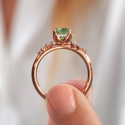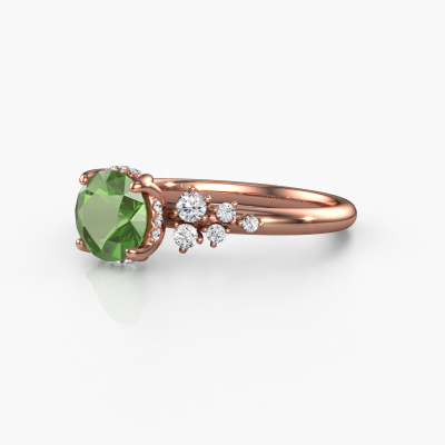 De naam van deze verlovingsring is de Emma RND. Hij is gemaakt van 14 Carat rosé goud en gezet met 6.5 mm toermalijn groen. Hoe zou je de stijl omschrijven van de liefde van jouw leven? Houdt zij van iets dat net een beetje anders is dan anders? Deze verfijnde rosé gouden verlovingsring is een mooie ring, die je zelf naar jouw of haar smaak verder kunt aanpassen. In deze fantasie verlovingsring is toermalijn groen verwerkt. Deze toermalijn groen zijn zorgvuldig geselecteerd, want wij vinden dat op jouw verlovingsring alleen de mooiste edelsteen mag schitteren, toch? Dit juweel wordt speciaal voor jou gemaakt door onze meester goudsmeden in ons eigen atelier.Door onze modernste technieken kunnen wij met uiterste precisie prachtige sieraden te ontwerpen en voor jou personaliseren in de hoogste juwelierskwaliteit. Tegelijkertijd zijn onze verlovingsringen altijd 30% goedkoper dan bij een andere juwelier. Dit komt doordat alle verlovingsringen pas vervaardigd worden op het moment dat deze besteld wordt en we daardoor geen dure voorraden hoeven te hanteren. Mocht je aan een bepaald budget gebonden zijn, kunnen we je graag adviseren welke combinatie je het beste kunt kiezen.Heb je zelf een specifieke verlovingsring ergens gezien, die je graag aan jouw geliefde zou willen geven? Bespreek gerust jouw ideeën met onze sieradenontwerpers, want wij zetten graag jouw ontwerp om tot een fantasie verlovingsring. Je kunt tijdens het ontwerpproces steeds meekijken, omdat wij met 3D tekeningen werken. Je krijgt hierdoor al een realistische indruk van hoe jouw ontwerp er in werkelijkheid uit komt te zien. Daarbij kun je een dummy vooraf bestellen. Een dummy is een kunststof ring, die precies dezelfde vormen heeft als jouw uiteindelijke ontwerp. Je kunt deze passen en zien of de breedte en dikte bijvoorbeeld naar wens zijn. Wij sturen je graag een vrijblijvende offerte, waarbij je ongetwijfeld versteld zult staan over de prijs en de kwaliteit van de ring en edelstenen.Om het voor jou makkelijker te maken kun je ieder besteld sieraad binnen 30 dagen na aflevering eenvoudig weer retour sturen.