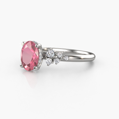 De naam van deze verlovingsring is de Emma OVL. Hij is gemaakt van platina en gezet met 8x6 mm toermalijn pink. Hoe zou je de stijl omschrijven van de liefde van jouw leven? Houdt zij van iets dat net een beetje anders is dan anders? Deze sublieme platina verlovingsring is een mooie ring, die je zelf naar jouw of haar smaak verder kunt aanpassen. In deze fantasie verlovingsring is toermalijn pink verwerkt. Deze toermalijn pink zijn zorgvuldig geselecteerd, want wij vinden dat op jouw verlovingsring alleen de mooiste edelsteen mag schitteren, toch? Dit juweel is gemaakt door een team van gedreven goudsmeden en designers. Hierdoor zal dit unieke pronkstuk een echte eyecatcher zijn.Door het gebruik van de modernste technieken, gecombineerd met ambachtelijk vakmanschap kunnen wij alle verlovingsringen zelf in ons atelier maken. Ieder sieraad wordt pas gemaakt nadat deze besteld is. Dit heeft als bijkomend voordeel dat we kunnen leveren tegen een prijs die je nergens anders tegenkomt.Ons team ontwerpt dagelijks nieuwe ringen in diverse stijlen. Heb je zelf een pavé solitaire verlovingsring ergens gezien, die jij het liefst aan jouw geliefde zou willen geven? Je kunt altijd jouw ideeën en ontwerp met onze sieradenontwerpers bespreken, want wij zetten graag jouw ontwerp om tot een fantasie verlovingsring. Je kunt tijdens het ontwerpproces steeds meekijken, omdat het ontwerp in een zeer gedetailleerde 3D tekening wordt omgezet. Daarbij kun je een dummy bestellen van het uiteindelijke ontwerp. Een dummy is een kunststof ring, die precies dezelfde vormen heeft als jouw uiteindelijke ontwerp. Je kunt deze passen en zien of de ontworpen verlovingsring helemaal naar jouw wens is. Wij sturen je graag een vrijblijvende offerte, waarbij je ongetwijfeld versteld zult staan over de prijs en de kwaliteit van de ring en edelstenen.Om het voor jou makkelijker te maken kun je ieder besteld sieraad binnen 30 dagen na aflevering eenvoudig weer retour sturen.