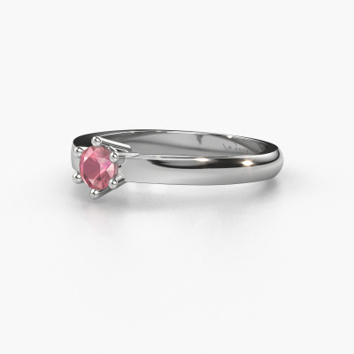 Bovenstaande verlovingsring heeft de naam Luna 1, dit type verlovingsring noemen we een solitaire ring omdat hij een enkele edelsteen bevat. De verlovingsring is uitgevoerd in platina en heeft een ronde tourmalijn pink ter grootte van 3.7 mm. Het leuke van onze configurator is dat je zelf je juweel kunt samenstellen tot een eigen persoonlijk juweel. Deze solitaire ring is uitgevoerd in de edelmetaal combinatie platina met platina, maar u kunt dus ook uit andere kleuren kiezen. Ieder juweel wordt met passie en liefde gemaakt door één van onze meestergoudsmeden.De solitaire verlovingsring is een bijzondere verlovingsring. Juist doordat de chatonzetting open is, creëert de lichtinval een schitterend effect op de edelsteen. Omdat de gekozen edelsteen hoog op de verlovingsring geplaatst wordt, wordt deze klassieke verlovingsring een prachtige eyecatcher. Met veel zorgvuldigheid vervaardigen wij alle details in deze solitaire verlovingsring met de hand, zodat jij binnenkort je aanzoek kunt bekronen met een unieke ring, speciaal voor de liefde van jouw leven!Onze goudsmeden vervaardigen pas je Luna 1 verlovingsring, zodra je deze besteld hebt. We hebben geen voorraden. Het voordeel hiervan is dat we de voorraad niet door hoeven te berekenen in de prijs, en kunnen daardoor sieraden leveren tegen een bijzonder lage prijs.Iedere dag is ons team van goudsmeden en sieradenontwerpers aan het werk om nieuwe sieraden te creëren. Het kan zijn dat je ergens een klassieke verlovingsring gezien hebt, die je als basis wilt nemen bij het ontwerpen van jouw unieke ring. Neem gerust contact met ons op en we zullen je een aanbod doen, waar je vrijwel zeker verwonderd zult zijn over de kwaliteit en de prijs.Om het voor jou makkelijker te maken kun je ieder besteld sieraad binnen 30 dagen na aflevering eenvoudig weer retour sturen.