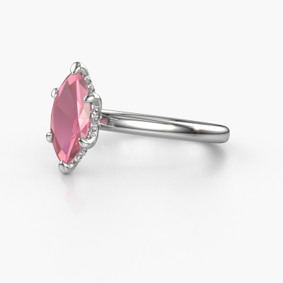 Deze verlovingsring heeft de naam Simone MRQ 2. Deze verlovingsring uitgevoerd in 14 Carat witgoud is gezet met 11x5.5 mm tourmalijn pink. Wat maakt jullie relatie uniek? Wat is het, dat jij haar wilt gaan vragen om jouw vrouw te worden? Die unieke band die jullie samen hebben, kun je laten weerspiegelen in een unieke ring. Een unieke solitaire verlovingsring die alleen voor haar vervaardigd is. En daarom past deze fantasie verlovingsring heel mooi bij haar. Ieder detail van deze ronde witgouden verlovingsring met tourmalijn pink wordt met de hand samengesteld, bijgewerkt en gepolijst door onze goudsmid in het atelier beneden. Een prachtige verlovingsring is het uiteindelijk resultaat, uniek en perfect gesmeed tot in de kleinste details! Dat is waar onze goudsmeden absoluut voor gaan! Dit juweel wordt speciaal voor jou gemaakt door onze meester goudsmeden in ons eigen atelier.Omdat wij zelf alle verlovingsring maken en direct aan jou leveren kunnen wij je een verlovingsring leveren tegen een prijs die je nergens anders zult tegenkomen. Een ring wordt pas gemaakt als we een bestelling krijgen, hierdoor hebben wij geen dure voorraden en kunnen wij je de beste prijs garanderen. Wij begrijpen dat het kopen van een verlovingsring online spannend is en willen daarom je zoveel mogelijk informeren over alle specifieke eigenschappen van de ring die jij koopt.Iedere dag is ons team van goudsmeden en sieradenontwerpers aan het werk om nieuwe sieraden te creëren. Het kan zijn dat je ergens een fantasie verlovingsring gezien hebt, die je als basis wilt nemen bij het ontwerpen van jouw unieke ring. Neem gerust contact met ons op en we zullen je een aanbod doen, waar je vrijwel zeker verwonderd zult zijn over de kwaliteit en de prijs.Om het voor jou makkelijker te maken kun je ieder besteld sieraad binnen 30 dagen na aflevering eenvoudig weer retour sturen.