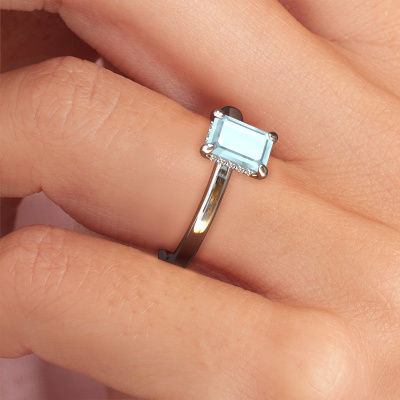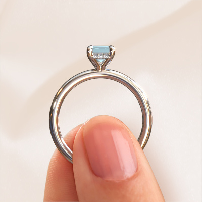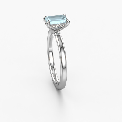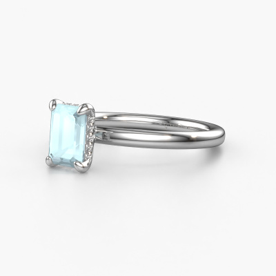 Bovenstaande verlovingsring heeft de naam Simone EME 2. Dit type verlovingsring noemen we een solitaire verlovingsring omdat hij een enkele edelsteen bevat. De verlovingsring is uitgevoerd in platina en heeft een smaragd geslepen aquamarijn ter grootte van 7x5 mm. Deze schitterende traditionele platina solitaire ring heeft een prachtige smaragd geslepen aquamarijn om je aanzoek heel speciaal te maken. De open chatonzetting zorgt voor een prachtige lichtinval op de diamant. Wist je dat de diamant bijvoorbeeld symbool staat voor eeuwige liefde en trouw? Juist daarom is het een prachtige edelsteen om in het middelpunt te stellen. Onze goudsmid plaatst met veel zorgvuldigheid de gekozen edelsteen hoog op de ring, waardoor het een echte eyecatcher is. Ieder juweel is gemaakt door een team van gedreven goudsmeden en designers. Hierdoor zal dit unieke pronkstuk een echte eyecatcher zijn.Door onze modernste technieken kunnen wij met uiterste precisie prachtige sieraden te ontwerpen en voor jou personaliseren in de hoogste juwelierskwaliteit. Tegelijkertijd zijn onze verlovingsringen altijd 30% goedkoper dan bij een andere juwelier. Dit komt doordat alle verlovingsringen pas vervaardigd worden op het moment dat deze besteld wordt en we daardoor geen dure voorraden hoeven te hanteren. Mocht je aan een bepaald budget gebonden zijn, kunnen we je graag adviseren welke combinatie je het beste kunt kiezen.Heb je zelf een speciale ring in gedachten, die je wellicht ergens gezien hebt? Je kunt je ideeën altijd met ons bespreken, wij zetten graag jouw ontwerp om tot een unieke verlovingsring. Het ontwerp kun je volgen, omdat wij met 3D tekeningen werken. Hierdoor krijg je al een realistische indruk van hoe jouw ontwerp er in het echt uit komt te zien. Wij sturen je graag een vrijblijvende offerte, waarbij je ongetwijfeld verwonderd zult zijn over de prijs in combinatie met de uitstekende kwaliteit die we aanbieden.Om het voor jou makkelijker te maken kun je ieder besteld sieraad binnen 30 dagen na aflevering eenvoudig weer retour sturen.