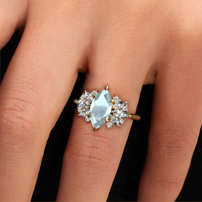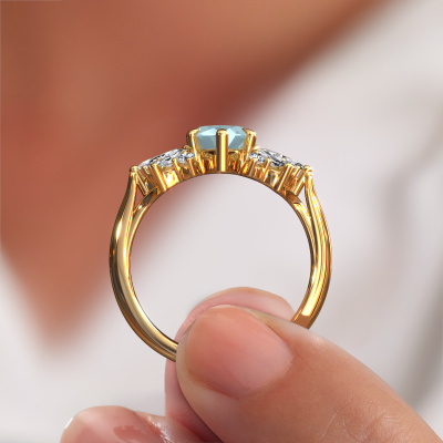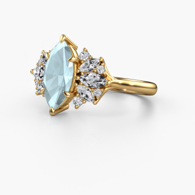 De naam van deze verlovingsring is de Jaimie. Hij is gemaakt van 14 Carat goud en gezet met een 12x6 mm aquamarijn. Zoek je een unieke gouden verlovingsring, die je zelf naar jouw smaak kunt aanpassen? In deze unieke verlovingsring is aquamarijn verwerkt. Deze zijn zorgvuldig geselecteerd om het mooiste effect te creëren. Onze goudsmid vervaardigt jouw verlovingsring beneden in ons eigen atelier, en plaatst de aquamarijn met uiterste precisie in de ring. Vervolgens wordt deze bijgewerkt en gepolijst totdat het resultaat zichtbaar is: de perfecte verlovingsring voor de liefde van jouw leven! Dit juweel wordt speciaal voor jou gemaakt door onze meester goudsmeden in ons eigen atelier.Door het gebruik van de modernste technieken, gecombineerd met ambachtelijk vakmanschap kunnen wij alle verlovingsringen zelf in ons atelier maken. Ieder sieraad wordt pas gemaakt nadat deze besteld is. Dit heeft als bijkomend voordeel dat we kunnen leveren tegen een prijs die je nergens anders tegenkomt.Heb je zelf een specifieke verlovingsring ergens gezien, die je graag aan jouw geliefde zou willen geven? Bespreek gerust jouw ideeën met onze sieradenontwerpers, want wij zetten graag jouw ontwerp om tot een unieke verlovingsring. Je kunt tijdens het ontwerpproces steeds meekijken, omdat wij met 3D tekeningen werken. Je krijgt hierdoor al een realistische indruk van hoe jouw ontwerp er in werkelijkheid uit komt te zien. Daarbij kun je een dummy vooraf bestellen. Een dummy is een kunststof ring, die precies dezelfde vormen heeft als jouw uiteindelijke ontwerp. Je kunt deze passen en zien of de breedte en dikte bijvoorbeeld naar wens zijn. Wij sturen je graag een vrijblijvende offerte, waarbij je ongetwijfeld versteld zult staan over de prijs en de kwaliteit van de ring en edelstenen.Om het voor jou makkelijker te maken kun je ieder besteld sieraad binnen 30 dagen na aflevering eenvoudig weer retour sturen.