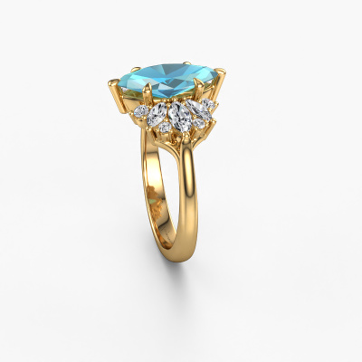 De naam van deze verlovingsring is de Jaimie. Hij is gemaakt van 14 Carat goud en gezet met een 12x6 mm blauw topaas. Zoek je een unieke gouden verlovingsring, die je zelf naar jouw smaak kunt aanpassen? In deze unieke verlovingsring is blauw topaas verwerkt. Deze zijn zorgvuldig geselecteerd om het mooiste effect te creëren. Onze goudsmid vervaardigt jouw verlovingsring beneden in ons eigen atelier, en plaatst de blauw topaas met uiterste precisie in de ring. Vervolgens wordt deze bijgewerkt en gepolijst totdat het resultaat zichtbaar is: de perfecte verlovingsring voor de liefde van jouw leven! Dit juweel wordt speciaal voor jou gemaakt door onze meester goudsmeden in ons eigen atelier.Door het gebruik van de modernste technieken, gecombineerd met ambachtelijk vakmanschap kunnen wij alle verlovingsringen zelf in ons atelier maken. Ieder sieraad wordt pas gemaakt nadat deze besteld is. Dit heeft als bijkomend voordeel dat we kunnen leveren tegen een prijs die je nergens anders tegenkomt.Heb je zelf een specifieke verlovingsring ergens gezien, die je graag aan jouw geliefde zou willen geven? Bespreek gerust jouw ideeën met onze sieradenontwerpers, want wij zetten graag jouw ontwerp om tot een unieke verlovingsring. Je kunt tijdens het ontwerpproces steeds meekijken, omdat wij met 3D tekeningen werken. Je krijgt hierdoor al een realistische indruk van hoe jouw ontwerp er in werkelijkheid uit komt te zien. Daarbij kun je een dummy vooraf bestellen. Een dummy is een kunststof ring, die precies dezelfde vormen heeft als jouw uiteindelijke ontwerp. Je kunt deze passen en zien of de breedte en dikte bijvoorbeeld naar wens zijn. Wij sturen je graag een vrijblijvende offerte, waarbij je ongetwijfeld versteld zult staan over de prijs en de kwaliteit van de ring en edelstenen.Om het voor jou makkelijker te maken kun je ieder besteld sieraad binnen 30 dagen na aflevering eenvoudig weer retour sturen.