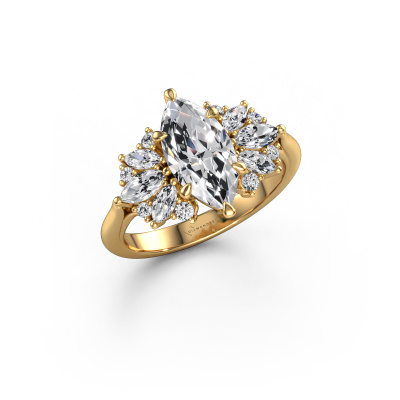 De naam van deze verlovingsring is de Jaimie. Hij is gemaakt van 14 Carat goud en gezet met een 1.50 crt lab-grown diamant. Zoek je een unieke gouden verlovingsring, die je zelf naar jouw smaak kunt aanpassen? In deze unieke verlovingsring is lab-grown diamant verwerkt. Deze zijn zorgvuldig geselecteerd om het mooiste effect te creëren. Onze goudsmid vervaardigt jouw verlovingsring beneden in ons eigen atelier, en plaatst de lab-grown diamant met uiterste precisie in de ring. Vervolgens wordt deze bijgewerkt en gepolijst totdat het resultaat zichtbaar is: de perfecte verlovingsring voor de liefde van jouw leven! Dit juweel wordt speciaal voor jou gemaakt door onze meester goudsmeden in ons eigen atelier.Door het gebruik van de modernste technieken, gecombineerd met ambachtelijk vakmanschap kunnen wij alle verlovingsringen zelf in ons atelier maken. Ieder sieraad wordt pas gemaakt nadat deze besteld is. Dit heeft als bijkomend voordeel dat we kunnen leveren tegen een prijs die je nergens anders tegenkomt.Heb je zelf een specifieke verlovingsring ergens gezien, die je graag aan jouw geliefde zou willen geven? Bespreek gerust jouw ideeën met onze sieradenontwerpers, want wij zetten graag jouw ontwerp om tot een unieke verlovingsring. Je kunt tijdens het ontwerpproces steeds meekijken, omdat wij met 3D tekeningen werken. Je krijgt hierdoor al een realistische indruk van hoe jouw ontwerp er in werkelijkheid uit komt te zien. Daarbij kun je een dummy vooraf bestellen. Een dummy is een kunststof ring, die precies dezelfde vormen heeft als jouw uiteindelijke ontwerp. Je kunt deze passen en zien of de breedte en dikte bijvoorbeeld naar wens zijn. Wij sturen je graag een vrijblijvende offerte, waarbij je ongetwijfeld versteld zult staan over de prijs en de kwaliteit van de ring en edelstenen.Om het voor jou makkelijker te maken kun je ieder besteld sieraad binnen 30 dagen na aflevering eenvoudig weer retour sturen.