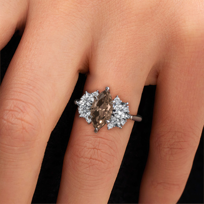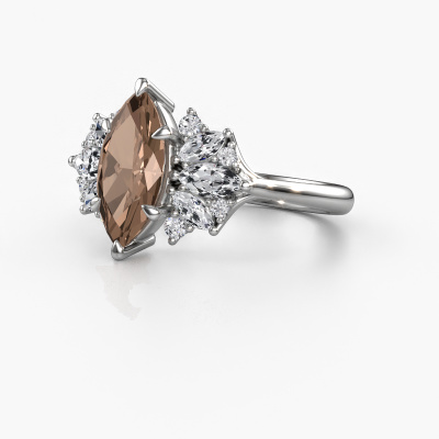 De naam van deze verlovingsring is de Jaimie. Hij is gemaakt van platina en gezet met een 1.50 crt bruine diamant. Zoek je een unieke platina verlovingsring, die je zelf naar jouw smaak kunt aanpassen? In deze unieke verlovingsring is bruine diamant verwerkt. Deze zijn zorgvuldig geselecteerd om het mooiste effect te creëren. Onze goudsmid vervaardigt jouw verlovingsring beneden in ons eigen atelier, en plaatst de bruine diamant met uiterste precisie in de ring. Vervolgens wordt deze bijgewerkt en gepolijst totdat het resultaat zichtbaar is: de perfecte verlovingsring voor de liefde van jouw leven! Dit juweel wordt speciaal voor jou gemaakt door onze meester goudsmeden in ons eigen atelier.Door het gebruik van de modernste technieken, gecombineerd met ambachtelijk vakmanschap kunnen wij alle verlovingsringen zelf in ons atelier maken. Ieder sieraad wordt pas gemaakt nadat deze besteld is. Dit heeft als bijkomend voordeel dat we kunnen leveren tegen een prijs die je nergens anders tegenkomt.Heb je zelf een specifieke verlovingsring ergens gezien, die je graag aan jouw geliefde zou willen geven? Bespreek gerust jouw ideeën met onze sieradenontwerpers, want wij zetten graag jouw ontwerp om tot een unieke verlovingsring. Je kunt tijdens het ontwerpproces steeds meekijken, omdat wij met 3D tekeningen werken. Je krijgt hierdoor al een realistische indruk van hoe jouw ontwerp er in werkelijkheid uit komt te zien. Daarbij kun je een dummy vooraf bestellen. Een dummy is een kunststof ring, die precies dezelfde vormen heeft als jouw uiteindelijke ontwerp. Je kunt deze passen en zien of de breedte en dikte bijvoorbeeld naar wens zijn. Wij sturen je graag een vrijblijvende offerte, waarbij je ongetwijfeld versteld zult staan over de prijs en de kwaliteit van de ring en edelstenen.Om het voor jou makkelijker te maken kun je ieder besteld sieraad binnen 30 dagen na aflevering eenvoudig weer retour sturen.
