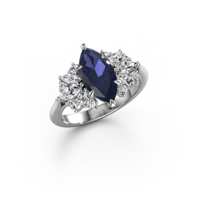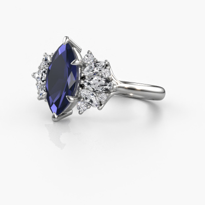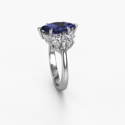 De naam van deze verlovingsring is de Jaimie. Hij is gemaakt van platina en gezet met een 12x6 mm saffier. Zoek je een unieke platina verlovingsring, die je zelf naar jouw smaak kunt aanpassen? In deze unieke verlovingsring is saffier verwerkt. Deze zijn zorgvuldig geselecteerd om het mooiste effect te creëren. Onze goudsmid vervaardigt jouw verlovingsring beneden in ons eigen atelier, en plaatst de saffier met uiterste precisie in de ring. Vervolgens wordt deze bijgewerkt en gepolijst totdat het resultaat zichtbaar is: de perfecte verlovingsring voor de liefde van jouw leven! Dit juweel wordt speciaal voor jou gemaakt door onze meester goudsmeden in ons eigen atelier.Door het gebruik van de modernste technieken, gecombineerd met ambachtelijk vakmanschap kunnen wij alle verlovingsringen zelf in ons atelier maken. Ieder sieraad wordt pas gemaakt nadat deze besteld is. Dit heeft als bijkomend voordeel dat we kunnen leveren tegen een prijs die je nergens anders tegenkomt.Heb je zelf een specifieke verlovingsring ergens gezien, die je graag aan jouw geliefde zou willen geven? Bespreek gerust jouw ideeën met onze sieradenontwerpers, want wij zetten graag jouw ontwerp om tot een unieke verlovingsring. Je kunt tijdens het ontwerpproces steeds meekijken, omdat wij met 3D tekeningen werken. Je krijgt hierdoor al een realistische indruk van hoe jouw ontwerp er in werkelijkheid uit komt te zien. Daarbij kun je een dummy vooraf bestellen. Een dummy is een kunststof ring, die precies dezelfde vormen heeft als jouw uiteindelijke ontwerp. Je kunt deze passen en zien of de breedte en dikte bijvoorbeeld naar wens zijn. Wij sturen je graag een vrijblijvende offerte, waarbij je ongetwijfeld versteld zult staan over de prijs en de kwaliteit van de ring en edelstenen.Om het voor jou makkelijker te maken kun je ieder besteld sieraad binnen 30 dagen na aflevering eenvoudig weer retour sturen.