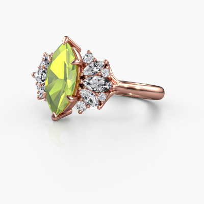 De naam van deze verlovingsring is de Jaimie. Hij is gemaakt van 14 Carat rosé goud en gezet met een 12x6 mm peridoot. Zoek je een unieke rosé gouden verlovingsring, die je zelf naar jouw smaak kunt aanpassen? In deze unieke verlovingsring is peridoot verwerkt. Deze zijn zorgvuldig geselecteerd om het mooiste effect te creëren. Onze goudsmid vervaardigt jouw verlovingsring beneden in ons eigen atelier, en plaatst de peridoot met uiterste precisie in de ring. Vervolgens wordt deze bijgewerkt en gepolijst totdat het resultaat zichtbaar is: de perfecte verlovingsring voor de liefde van jouw leven! Dit juweel wordt speciaal voor jou gemaakt door onze meester goudsmeden in ons eigen atelier.Door het gebruik van de modernste technieken, gecombineerd met ambachtelijk vakmanschap kunnen wij alle verlovingsringen zelf in ons atelier maken. Ieder sieraad wordt pas gemaakt nadat deze besteld is. Dit heeft als bijkomend voordeel dat we kunnen leveren tegen een prijs die je nergens anders tegenkomt.Heb je zelf een specifieke verlovingsring ergens gezien, die je graag aan jouw geliefde zou willen geven? Bespreek gerust jouw ideeën met onze sieradenontwerpers, want wij zetten graag jouw ontwerp om tot een unieke verlovingsring. Je kunt tijdens het ontwerpproces steeds meekijken, omdat wij met 3D tekeningen werken. Je krijgt hierdoor al een realistische indruk van hoe jouw ontwerp er in werkelijkheid uit komt te zien. Daarbij kun je een dummy vooraf bestellen. Een dummy is een kunststof ring, die precies dezelfde vormen heeft als jouw uiteindelijke ontwerp. Je kunt deze passen en zien of de breedte en dikte bijvoorbeeld naar wens zijn. Wij sturen je graag een vrijblijvende offerte, waarbij je ongetwijfeld versteld zult staan over de prijs en de kwaliteit van de ring en edelstenen.Om het voor jou makkelijker te maken kun je ieder besteld sieraad binnen 30 dagen na aflevering eenvoudig weer retour sturen.