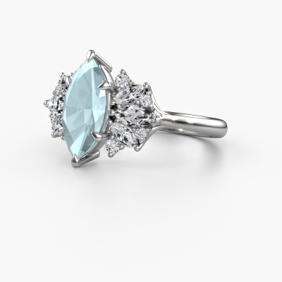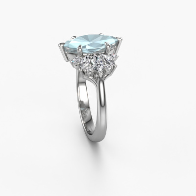 De naam van deze verlovingsring is de Jaimie. Hij is gemaakt van 14 Carat witgoud en gezet met een 12x6 mm aquamarijn. Zoek je een unieke witgouden verlovingsring, die je zelf naar jouw smaak kunt aanpassen? In deze unieke verlovingsring is aquamarijn verwerkt. Deze zijn zorgvuldig geselecteerd om het mooiste effect te creëren. Onze goudsmid vervaardigt jouw verlovingsring beneden in ons eigen atelier, en plaatst de aquamarijn met uiterste precisie in de ring. Vervolgens wordt deze bijgewerkt en gepolijst totdat het resultaat zichtbaar is: de perfecte verlovingsring voor de liefde van jouw leven! Dit juweel wordt speciaal voor jou gemaakt door onze meester goudsmeden in ons eigen atelier.Door het gebruik van de modernste technieken, gecombineerd met ambachtelijk vakmanschap kunnen wij alle verlovingsringen zelf in ons atelier maken. Ieder sieraad wordt pas gemaakt nadat deze besteld is. Dit heeft als bijkomend voordeel dat we kunnen leveren tegen een prijs die je nergens anders tegenkomt.Heb je zelf een specifieke verlovingsring ergens gezien, die je graag aan jouw geliefde zou willen geven? Bespreek gerust jouw ideeën met onze sieradenontwerpers, want wij zetten graag jouw ontwerp om tot een unieke verlovingsring. Je kunt tijdens het ontwerpproces steeds meekijken, omdat wij met 3D tekeningen werken. Je krijgt hierdoor al een realistische indruk van hoe jouw ontwerp er in werkelijkheid uit komt te zien. Daarbij kun je een dummy vooraf bestellen. Een dummy is een kunststof ring, die precies dezelfde vormen heeft als jouw uiteindelijke ontwerp. Je kunt deze passen en zien of de breedte en dikte bijvoorbeeld naar wens zijn. Wij sturen je graag een vrijblijvende offerte, waarbij je ongetwijfeld versteld zult staan over de prijs en de kwaliteit van de ring en edelstenen.Om het voor jou makkelijker te maken kun je ieder besteld sieraad binnen 30 dagen na aflevering eenvoudig weer retour sturen.