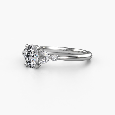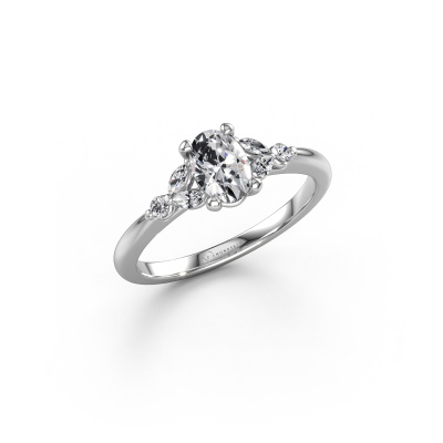 De naam van deze verlovingsring is de Megan OVL. Hij is gemaakt van 14 Carat witgoud en gezet met een 0.60 crt diamant. Zoek je een unieke witgouden verlovingsring, die je zelf naar jouw smaak kunt aanpassen? In deze unieke verlovingsring is diamant verwerkt. Deze zijn zorgvuldig geselecteerd om het mooiste effect te creëren. Onze goudsmid vervaardigt jouw verlovingsring beneden in ons eigen atelier, en plaatst de diamant met uiterste precisie in de ring. Vervolgens wordt deze bijgewerkt en gepolijst totdat het resultaat zichtbaar is: de perfecte verlovingsring voor de liefde van jouw leven! Dit juweel is gemaakt door een team van gedreven goudsmeden en designers. Hierdoor zal dit unieke pronkstuk een echte eyecatcher zijn.Door het gebruik van de modernste technieken, gecombineerd met ambachtelijk vakmanschap kunnen wij alle verlovingsringen zelf in ons atelier maken. Ieder sieraad wordt pas gemaakt nadat deze besteld is. Dit heeft als bijkomend voordeel dat we kunnen leveren tegen een prijs die je nergens anders tegenkomt.Ons team ontwerpt dagelijks nieuwe ringen in diverse stijlen. Heb je zelf een pavé solitaire verlovingsring ergens gezien, die jij het liefst aan jouw geliefde zou willen geven? Je kunt altijd jouw ideeën en ontwerp met onze sieradenontwerpers bespreken, want wij zetten graag jouw ontwerp om tot een unieke verlovingsring. Je kunt tijdens het ontwerpproces steeds meekijken, omdat het ontwerp in een zeer gedetailleerde 3D tekening wordt omgezet. Daarbij kun je een dummy bestellen van het uiteindelijke ontwerp. Een dummy is een kunststof ring, die precies dezelfde vormen heeft als jouw uiteindelijke ontwerp. Je kunt deze passen en zien of de ontworpen verlovingsring helemaal naar jouw wens is. Wij sturen je graag een vrijblijvende offerte, waarbij je ongetwijfeld versteld zult staan over de prijs en de kwaliteit van de ring en edelstenen.Om het voor jou makkelijker te maken kun je ieder besteld sieraad binnen 30 dagen na aflevering eenvoudig weer retour sturen.
