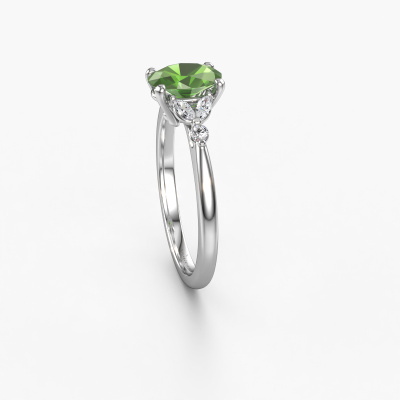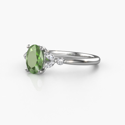 De naam van deze verlovingsring is de Megan OVL. Hij is gemaakt van 14 Carat witgoud en gezet met een 7,5x5,5 mm toermalijn groen. Zoek je een unieke witgouden verlovingsring, die je zelf naar jouw smaak kunt aanpassen? In deze unieke verlovingsring is toermalijn groen verwerkt. Deze zijn zorgvuldig geselecteerd om het mooiste effect te creëren. Onze goudsmid vervaardigt jouw verlovingsring beneden in ons eigen atelier, en plaatst de toermalijn groen met uiterste precisie in de ring. Vervolgens wordt deze bijgewerkt en gepolijst totdat het resultaat zichtbaar is: de perfecte verlovingsring voor de liefde van jouw leven! Dit juweel is gemaakt door een team van gedreven goudsmeden en designers. Hierdoor zal dit unieke pronkstuk een echte eyecatcher zijn.Door het gebruik van de modernste technieken, gecombineerd met ambachtelijk vakmanschap kunnen wij alle verlovingsringen zelf in ons atelier maken. Ieder sieraad wordt pas gemaakt nadat deze besteld is. Dit heeft als bijkomend voordeel dat we kunnen leveren tegen een prijs die je nergens anders tegenkomt.Ons team ontwerpt dagelijks nieuwe ringen in diverse stijlen. Heb je zelf een pavé solitaire verlovingsring ergens gezien, die jij het liefst aan jouw geliefde zou willen geven? Je kunt altijd jouw ideeën en ontwerp met onze sieradenontwerpers bespreken, want wij zetten graag jouw ontwerp om tot een unieke verlovingsring. Je kunt tijdens het ontwerpproces steeds meekijken, omdat het ontwerp in een zeer gedetailleerde 3D tekening wordt omgezet. Daarbij kun je een dummy bestellen van het uiteindelijke ontwerp. Een dummy is een kunststof ring, die precies dezelfde vormen heeft als jouw uiteindelijke ontwerp. Je kunt deze passen en zien of de ontworpen verlovingsring helemaal naar jouw wens is. Wij sturen je graag een vrijblijvende offerte, waarbij je ongetwijfeld versteld zult staan over de prijs en de kwaliteit van de ring en edelstenen.Om het voor jou makkelijker te maken kun je ieder besteld sieraad binnen 30 dagen na aflevering eenvoudig weer retour sturen.