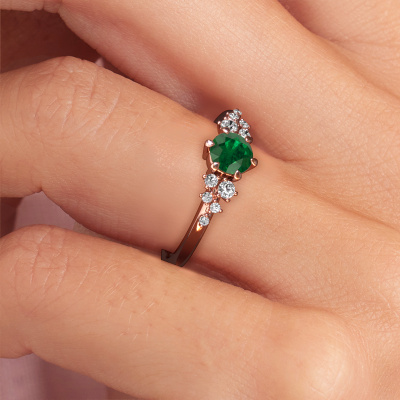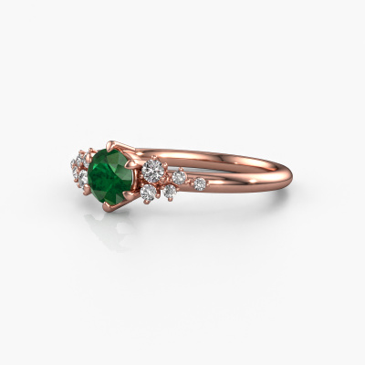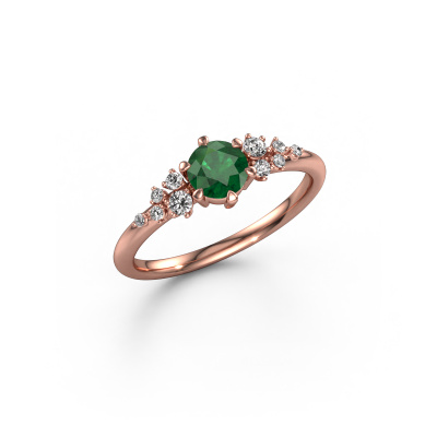 Bovenstaande verlovingsring heeft de naam Royce RND. Dit type verlovingsring noemen we een solitaire verlovingsring omdat hij een enkele edelsteen bevat. De verlovingsring is uitgevoerd in 14 Carat rosé goud en heeft een ronde smaragd ter grootte van 5 mm. Deze schitterende vintage rosé gouden solitaire ring heeft een prachtige ronde smaragd om je aanzoek heel speciaal te maken. De open chatonzetting zorgt voor een prachtige lichtinval op de diamant. Wist je dat de diamant bijvoorbeeld symbool staat voor eeuwige liefde en trouw? Juist daarom is het een prachtige edelsteen om in het middelpunt te stellen. Onze goudsmid plaatst met veel zorgvuldigheid de gekozen edelsteen hoog op de ring, waardoor het een echte eyecatcher is. Ieder juweel is gemaakt door een team van gedreven goudsmeden en designers. Hierdoor zal dit unieke pronkstuk een echte eyecatcher zijn.Wist je dat we een beste prijs garantie geven voor jouw verlovingsring? Dit is mogelijk omdat al onze sieraden met de hand gemaakt worden in ons eigen atelier. We hebben geen dure voorraden, en we maken pas je verlovingsring op het moment dat je besteld hebt. Doordat we de hele productie zelf in de hand hebben, kunnen wij je goed informeren over alle eigenschappen van deze ring. Juist omdat het kopen van een verlovingsring online spannend is, begrijpen wij dat het fijn is om alle kenmerken te weten van jouw ring.Heb je zelf een speciale ring in gedachten, die je wellicht ergens gezien hebt? Je kunt je ideeën altijd met ons bespreken, wij zetten graag jouw ontwerp om tot een unieke verlovingsring. Het ontwerp kun je volgen, omdat wij met 3D tekeningen werken. Hierdoor krijg je al een realistische indruk van hoe jouw ontwerp er in het echt uit komt te zien. Wij sturen je graag een vrijblijvende offerte, waarbij je ongetwijfeld verwonderd zult zijn over de prijs in combinatie met de uitstekende kwaliteit die we aanbieden.Om het voor jou makkelijker te maken kun je ieder besteld sieraad binnen 30 dagen na aflevering eenvoudig weer retour sturen.