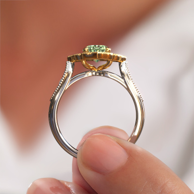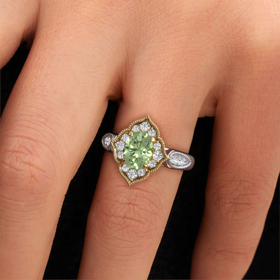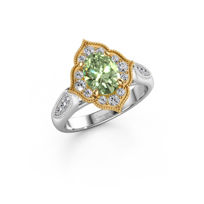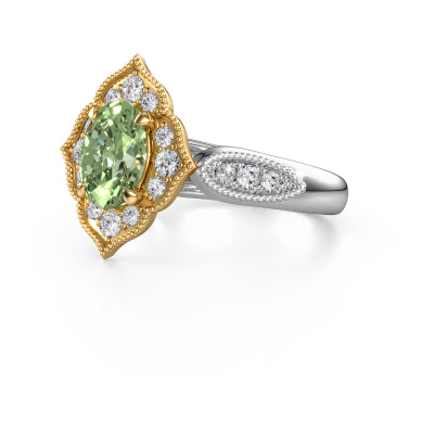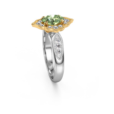 Deze verlovingsring heeft de naam Rosan. Deze verlovingsring uitgevoerd in 14 Carat witgoud is gezet met groene lab grown diamant. Een bijzondere witgouden vintage ring, deze unieke verlovingsring die jouw liefde van je leven zeker laat stralen! En dat is precies waar wij voor gaan. In deze vintage verlovingsring zijn prachtige groene lab grown diamanten verwerkt. Je kunt natuurlijk iedere edelsteen die wij aanbieden hierin laten verwerken. De edelsteen is zorgvuldig geselecteerd, want wij vinden dat op jouw verlovingsring alleen de mooiste edelsteen mag schitteren, toch? Onze goudsmid vervaardigt jouw verlovingsring in ons eigen atelier, en plaatst de groene lab grown diamant met uiterste precisie in de ring. Vervolgens wordt deze bijgewerkt en gepolijst totdat het resultaat zichtbaar is: de perfecte verlovingsring voor de liefde van jouw leven! Dit juweel wordt speciaal voor jou gemaakt door onze meester goudsmeden in ons eigen atelier.Wist je dat we een beste prijs garantie geven voor jouw verlovingsring? Dit is mogelijk omdat al onze sieraden met de hand gemaakt worden in ons eigen atelier. We hebben geen dure voorraden, en we maken pas je verlovingsring op het moment dat je besteld hebt. Doordat we de hele productie zelf in de hand hebben, kunnen wij je goed informeren over alle eigenschappen van deze ring. Juist omdat het kopen van een verlovingsring online spannend is, begrijpen wij dat het fijn is om alle kenmerken te weten van jouw ring.Ons team is iedere dag weer bezig om nieuwe ontwerpen toe te voegen, in samenwerking met onze designers en goudsmeden wordt gekeken hoe we tot het mooiste ontwerp kunnen komen. Wij doen ons best om tot een zo gevarieerd mogelijk aanbod te komen. Wellicht heb je zelf al een mooi idee van een sieraad dat je ooit wel eens gezien hebt. Neem dan eens vrijblijvend contact met ons op. Wij maken een offerte voor je op waarbij wij vrij zeker zijn dat we wat betreft kwaliteit en prijs jou versteld zullen laten staan.Om het voor jou makkelijker te maken kun je ieder besteld sieraad binnen 30 dagen na aflevering eenvoudig weer retour sturen.