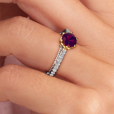 Deze verlovingsring heeft de naam Venita. Deze verlovingsring uitgevoerd in 14 Carat witgoud is gezet met rhodoliet. Een bijzondere witgouden vintage ring, deze unieke verlovingsring die jouw liefde van je leven zeker laat stralen! En dat is precies waar wij voor gaan. In deze vintage verlovingsring zijn prachtige rhodoliet verwerkt. Je kunt natuurlijk iedere edelsteen die wij aanbieden hierin laten verwerken. De edelsteen is zorgvuldig geselecteerd, want wij vinden dat op jouw verlovingsring alleen de mooiste edelsteen mag schitteren, toch? Onze goudsmid vervaardigt jouw verlovingsring in ons eigen atelier, en plaatst de rhodoliet met uiterste precisie in de ring. Vervolgens wordt deze bijgewerkt en gepolijst totdat het resultaat zichtbaar is: de perfecte verlovingsring voor de liefde van jouw leven! Dit juweel wordt speciaal voor jou gemaakt door onze meester goudsmeden in ons eigen atelier.Wist je dat we een beste prijs garantie geven voor jouw verlovingsring? Dit is mogelijk omdat al onze sieraden met de hand gemaakt worden in ons eigen atelier. We hebben geen dure voorraden, en we maken pas je verlovingsring op het moment dat je besteld hebt. Doordat we de hele productie zelf in de hand hebben, kunnen wij je goed informeren over alle eigenschappen van deze ring. Juist omdat het kopen van een verlovingsring online spannend is, begrijpen wij dat het fijn is om alle kenmerken te weten van jouw ring.Ons team is iedere dag weer bezig om nieuwe ontwerpen toe te voegen, in samenwerking met onze designers en goudsmeden wordt gekeken hoe we tot het mooiste ontwerp kunnen komen. Wij doen ons best om tot een zo gevarieerd mogelijk aanbod te komen. Wellicht heb je zelf al een mooi idee van een sieraad dat je ooit wel eens gezien hebt. Neem dan eens vrijblijvend contact met ons op. Wij maken een offerte voor je op waarbij wij vrij zeker zijn dat we wat betreft kwaliteit en prijs jou versteld zullen laten staan.Om het voor jou makkelijker te maken kun je ieder besteld sieraad binnen 30 dagen na aflevering eenvoudig weer retour sturen.